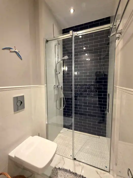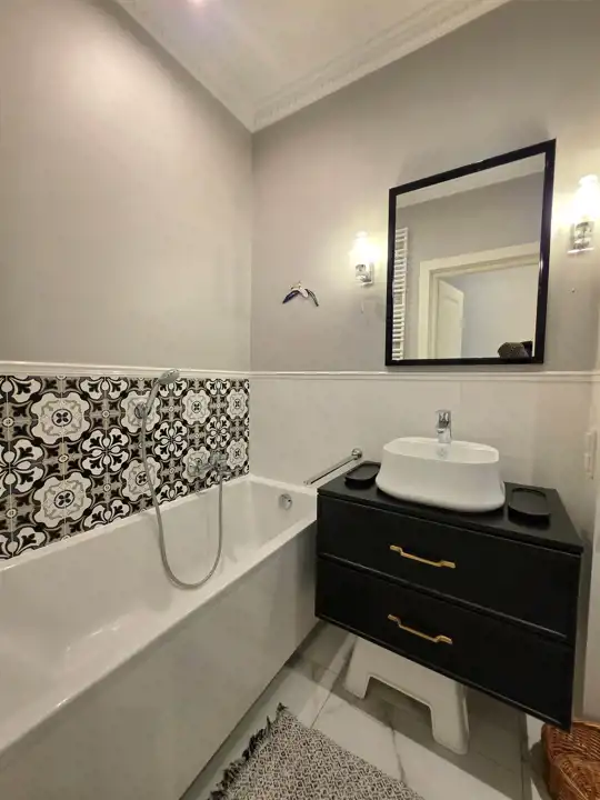 * Łazienka z wanną, kabiną prysznicową, toaletą, umywalką