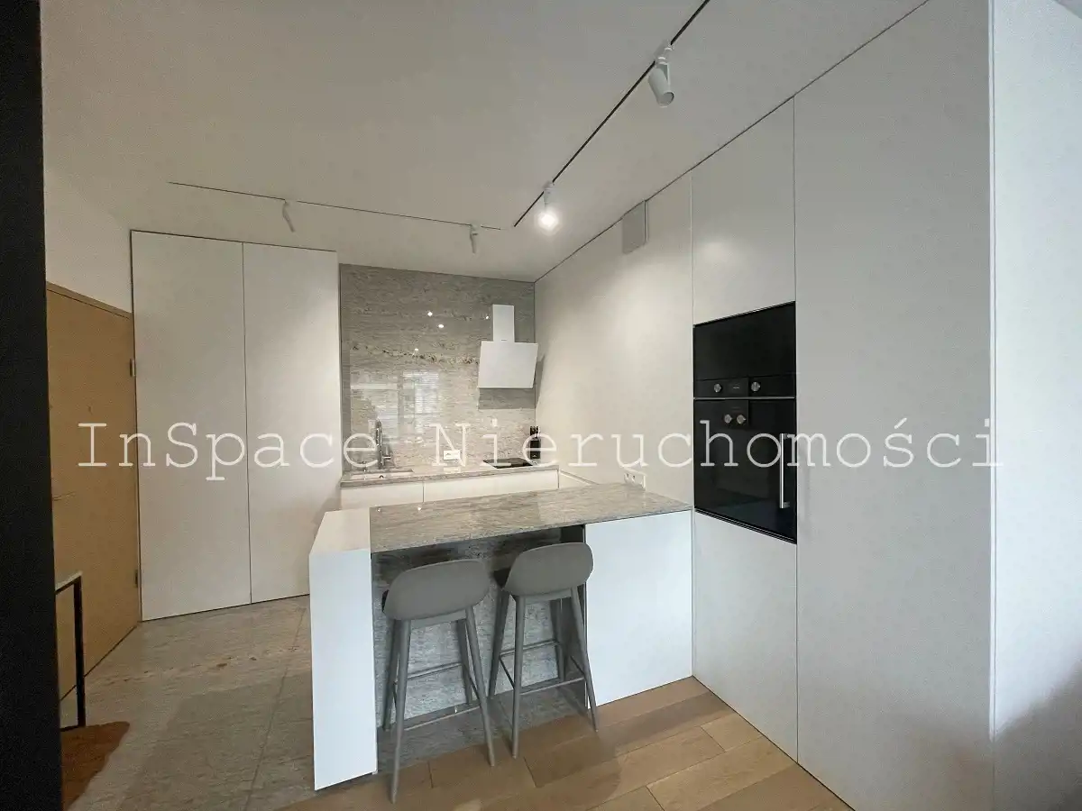 Mieszkanie wykończone w wysokim standardzie – drewniane podłogi, elementy z kamienia naturalnego oraz wysokiej jakości sprzęt AGD (m.in. Liebherr).