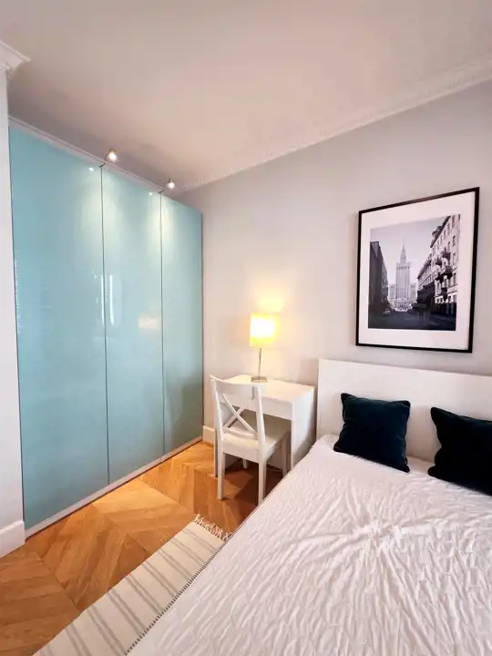 * Gabinet bądź druga sypialnia z łóżkiem, szafą i wyjściem na drugi balkon