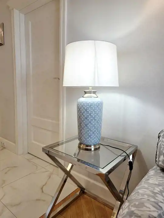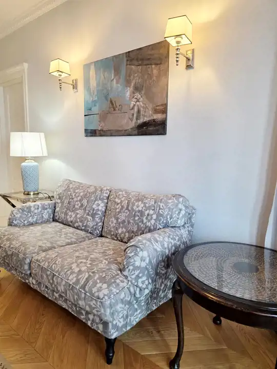 Dużo luster w pięknych ramach, okazałe lampy, wygodne meble.