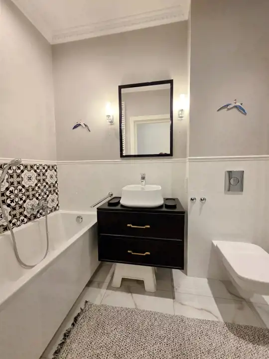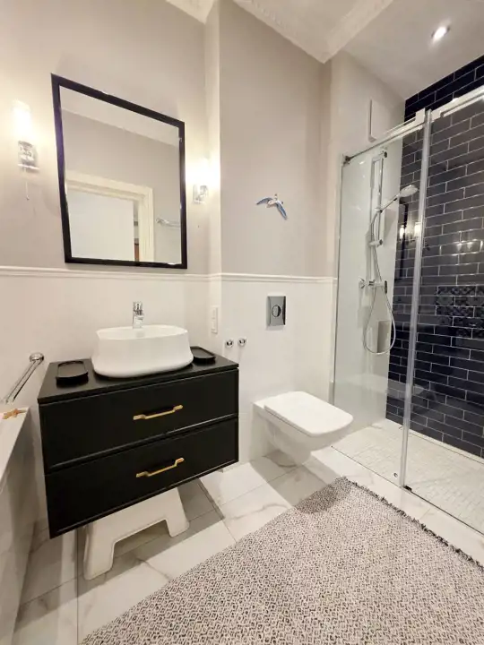 * Łazienka z wanną, kabiną prysznicową, toaletą, umywalką