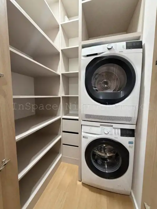 Garderoba - szafki oraz pralka i suszarka.
