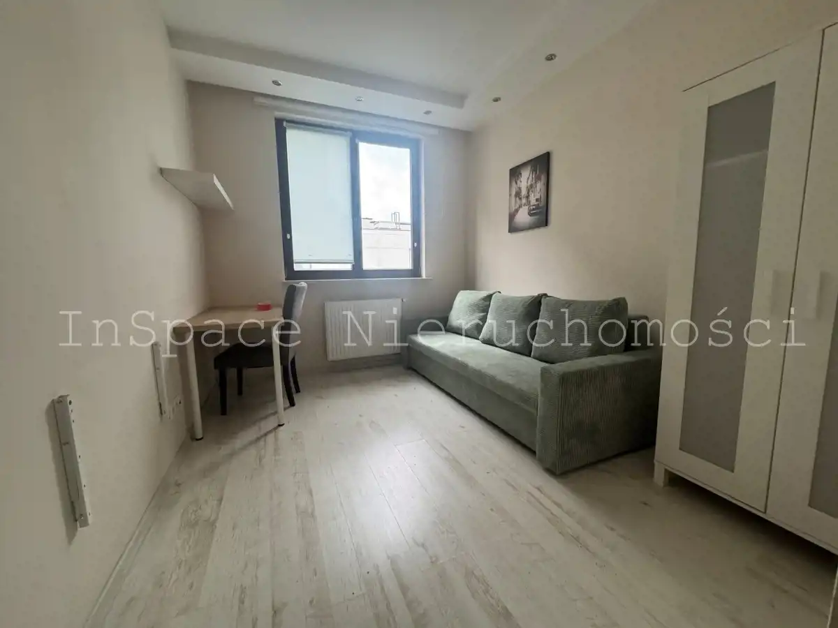 2 pokój: rozkładana sofa, szafa, biurko, krzesełko.