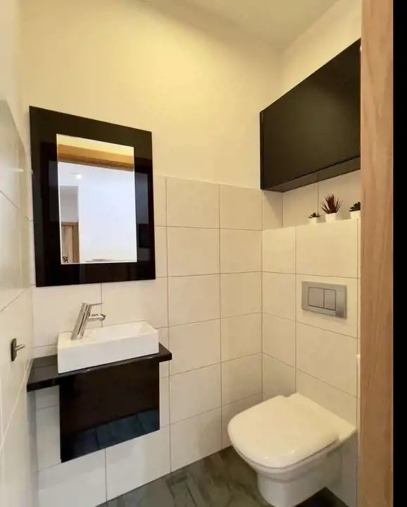 3 pokoje, otwarta kuchnia, łazienka, toaleta i taras