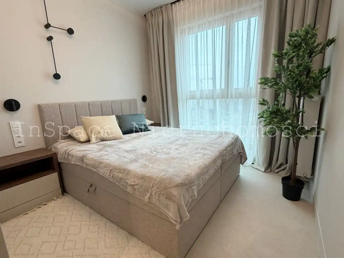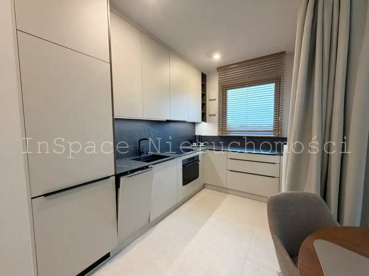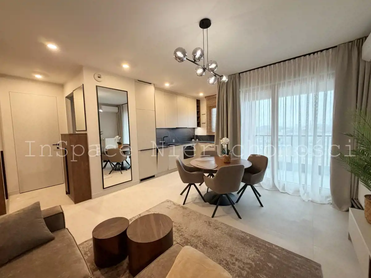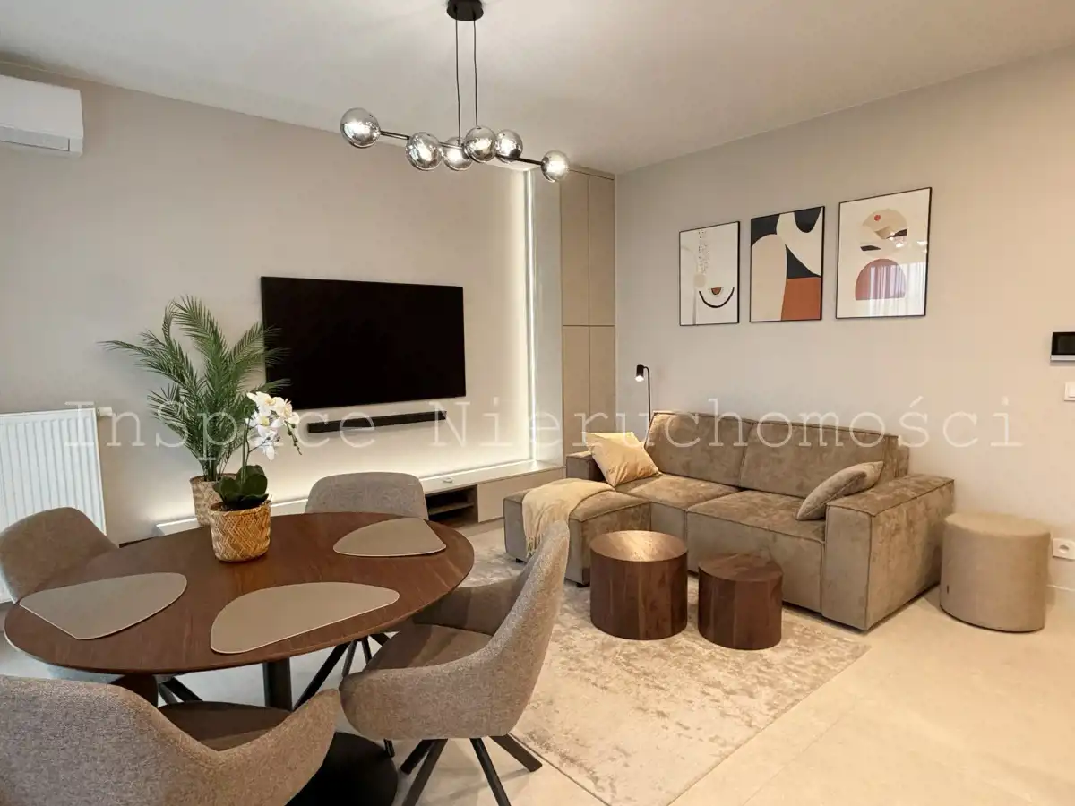 Mieszkanie jest NOWE, w pełni umeblowane, wyposażone (naczynia, garnki, sztućce, odkurzacz itp.) i wykończone z umeblowaniem w bardzo wysokim standardzie.