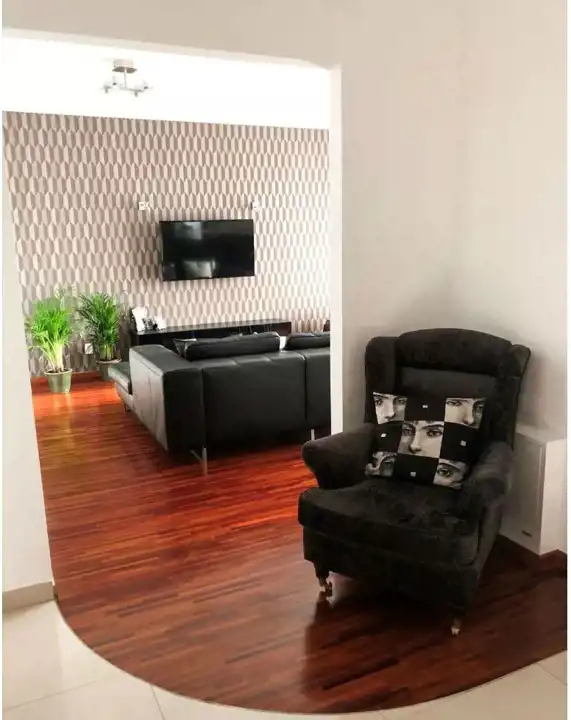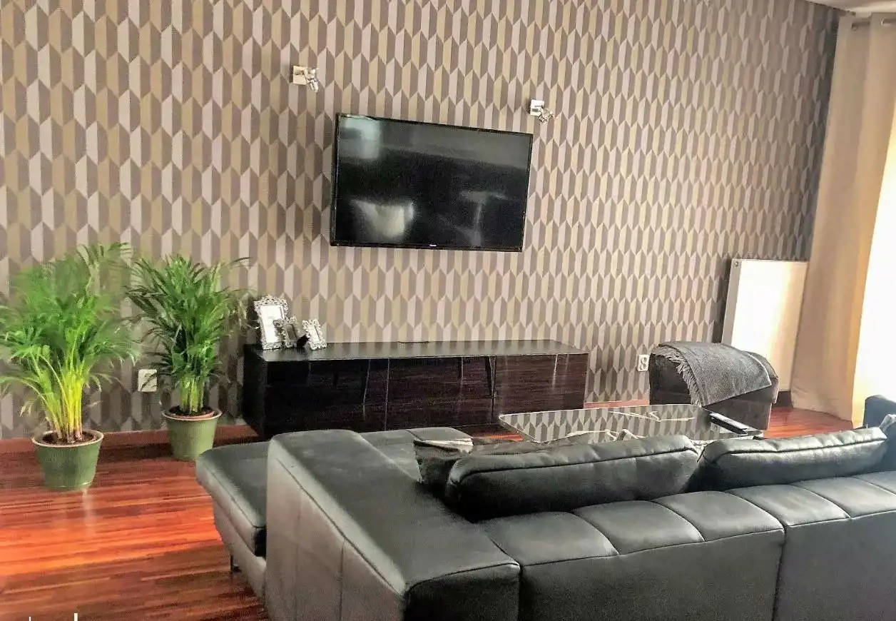 Mieszkanie jest w pełni umeblowane. W salonie na podłodze położony jest NATURALNY PARKIET. Ponadto salon posiada elegancki, obszerny narożnik, stolik, szafkę TV, telewizor Smart TV oraz stół pozwalający wygodnie zasiąść do posiłków.