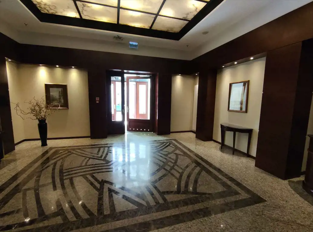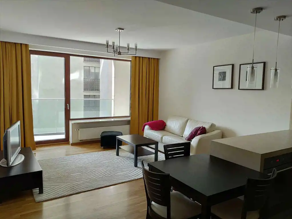 Apartament zlokalizowany na 3 piętrze apartamentowca ATELIER RESIDENCE w Warszawie, ul. Bagno. Okna wychodzą na cichą ul. Bagno. Mimo, że apartamentowiec jest zlokalizowany 100 m od skrzyżowania ul. Marszałkowskiej i Świętokrzyskiej, jest tu cicho i spokojnie a pod oknami zieleń. Do stacji metra, przystanków autobusowych i tramwajowych oraz pl. Grzybowskiego jest mniej niż 100 m. Do Parku Saskiego jest ok. 300 m. W pobliżu znajduje się wiele restauracji i barów. Budynek jest wykonany w bardzo wysokim standardzie, z portiernią i ochroną przy wejściu, korytarzami typu hotelowego (wyłożone drewnem i wykładziną dywanową i obrazami na ścianach). Mieszkanie o powierzchni 61 m 2 składa się z dwóch pokoi, otwartej kuchni, łazienki, garderoby i przedpokoju. Do mieszkania przynależy loggia o powierzchni 12 m 2 oraz miejsce garażowe w garażu podziemnym.