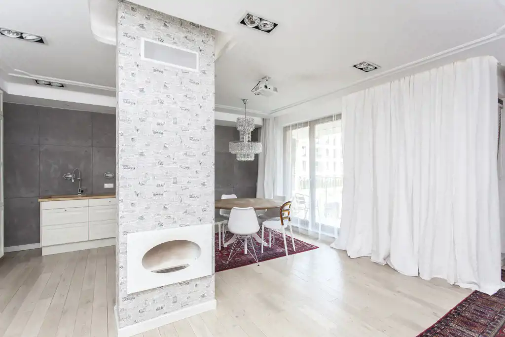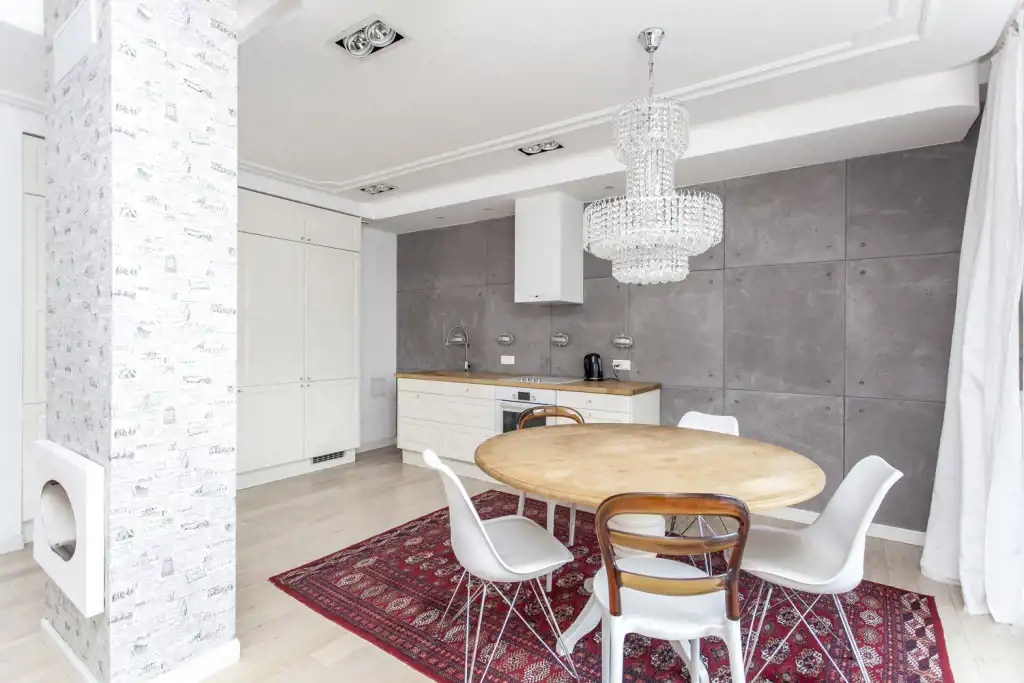 Luksusowe mieszkanie wykończone przy użyciu materiałów najwyższej klasy: drewno, kamień, kryształ.
