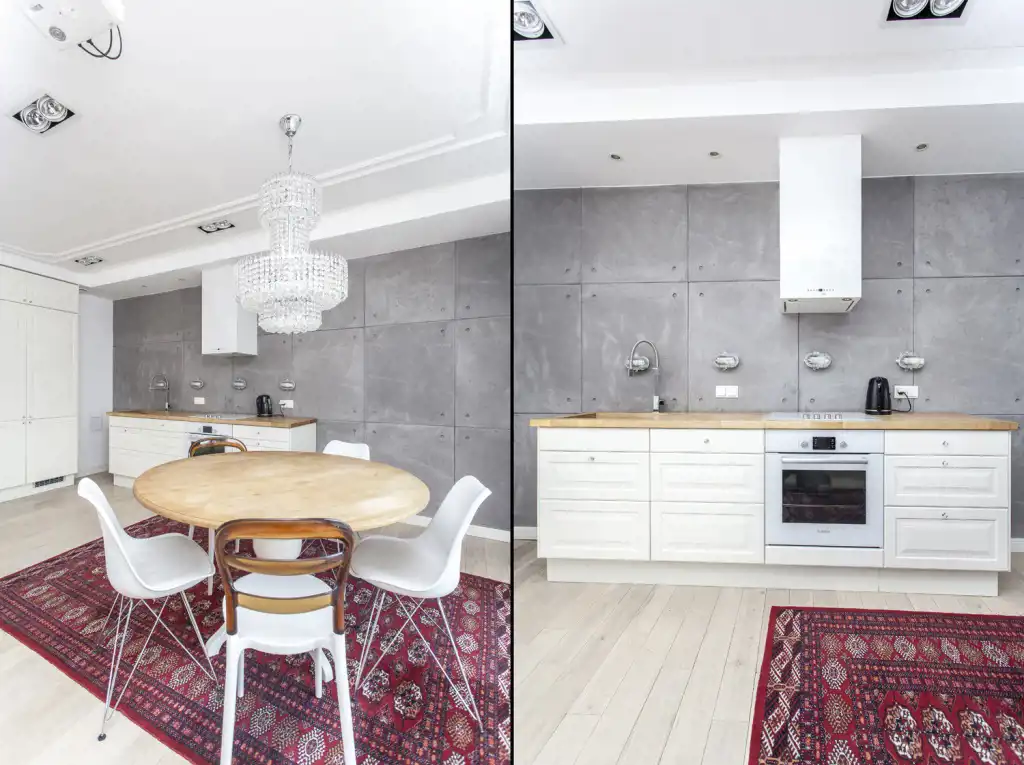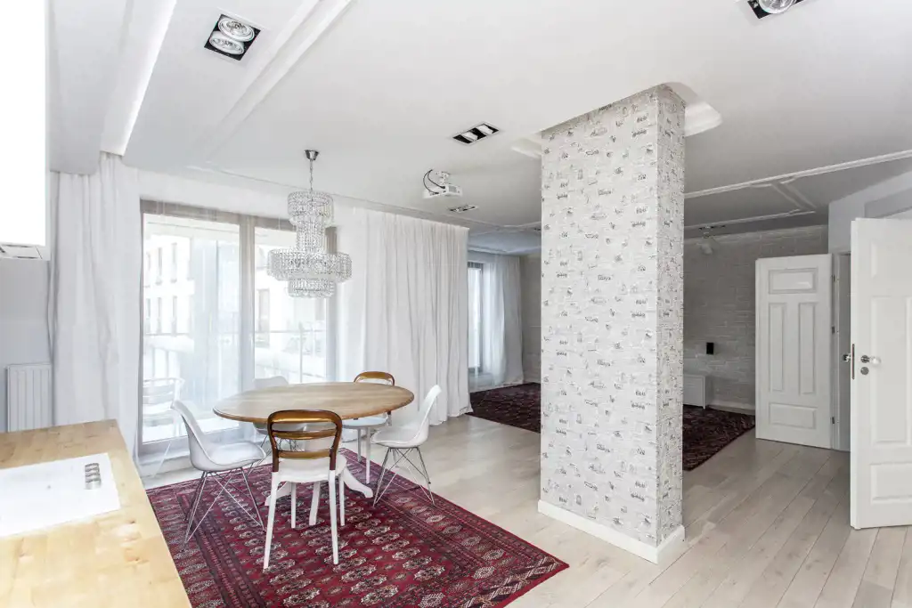 Luxurious apartment finished using the highest quality materials: wood, stone, crystal.