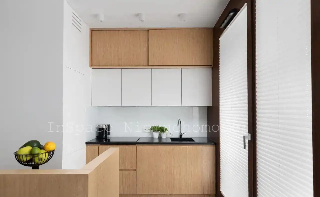 - otwarta, widna kuchnia w pełnej zabudowie (lodówka, zmywarka, piekarnik, płyta indukcyjna, okap)