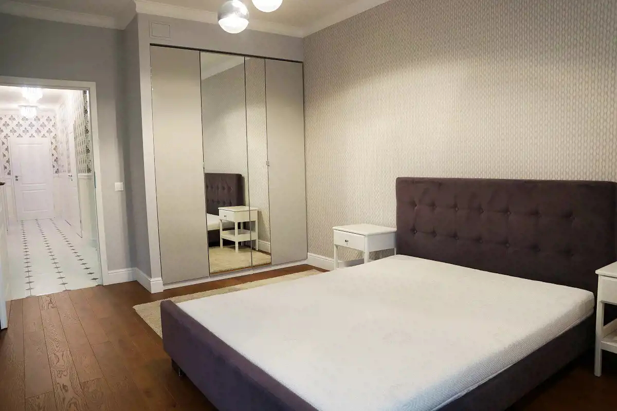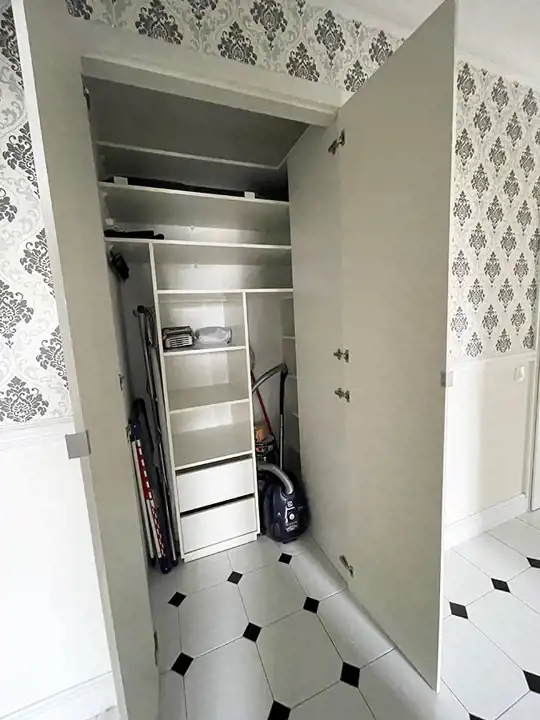 W przedpokoju znajdują się dwie podwójne szafy wnękowe oraz duże lustro.