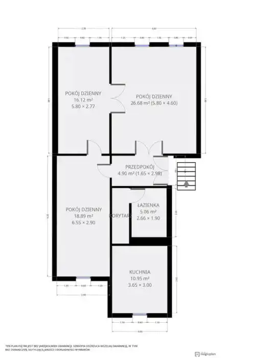 Pokoje - 16, 19 i 27 m2 - jeden z pokoi przechodni. Oddzielna, widna kuchnia 11m2. Na podłodze ładnie zachowany parkiet, balkon.