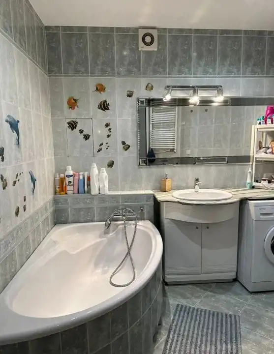 Mieszkanie w budynku 2000 roku, który w 2020 roku został odnowiony, ma zupełnie nową elewację i izolacje. Mieszkanie ma powierzchnię ok. 92 m2, posiada trzy sypialnie, salon, pokój gospodarczy, kuchnię, łazienkę oddzielna toaletę i 2 balkony. Kuchnia jest otwarta na salon, łazienka jest wyposażona w pralkę automatyczną i ma dużą wannę. Kuchnia jest z pełną zabudowę kuchenną (zmywarka, okap, kuchenka elektryczna, piekarnik oraz chłodziarko zamrażarka). Lokal jest bardzo widny, okna są w kierunkach wschodnim, południowym oraz zachodnim, każde okno w mieszkaniu jest wyposażone w rolety. Na podłogach parkiet dębowy i terakota.