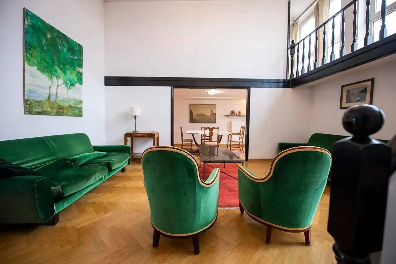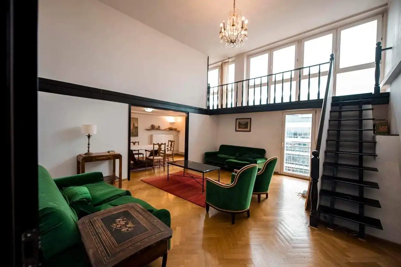 Wysokość salonu prawie 5 m, w części antresola