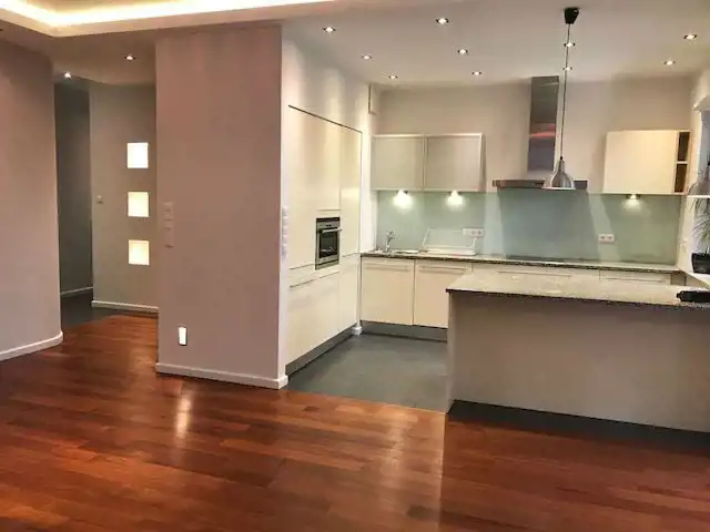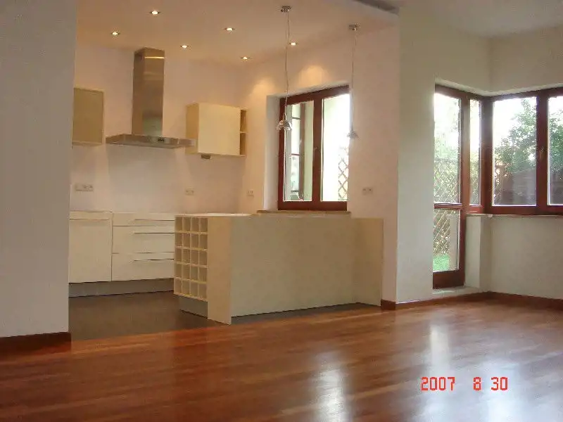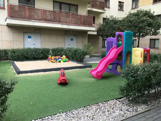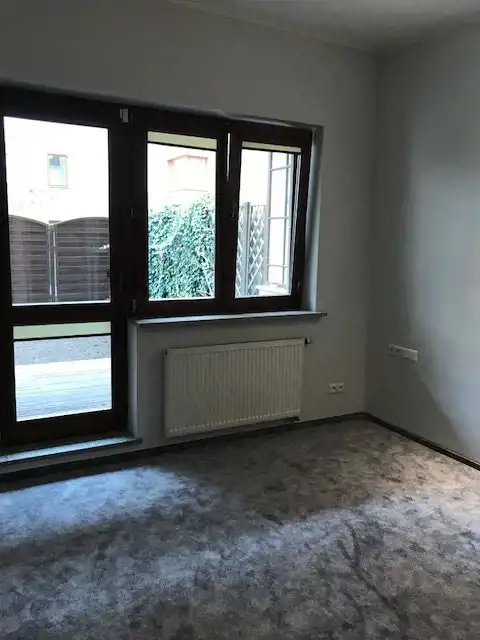 Modern building with security at Mokotów. Apartment on the ground floor with private garden of 50 m2. It consists of a living room with kitchen, 3 bedrooms and 2 bathrooms. Equipped and furnished. 2 parking spaces in the underground garage. Additional cost 2700PLN.