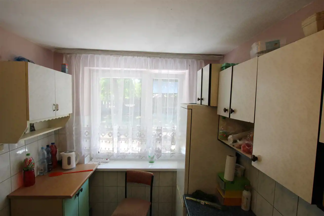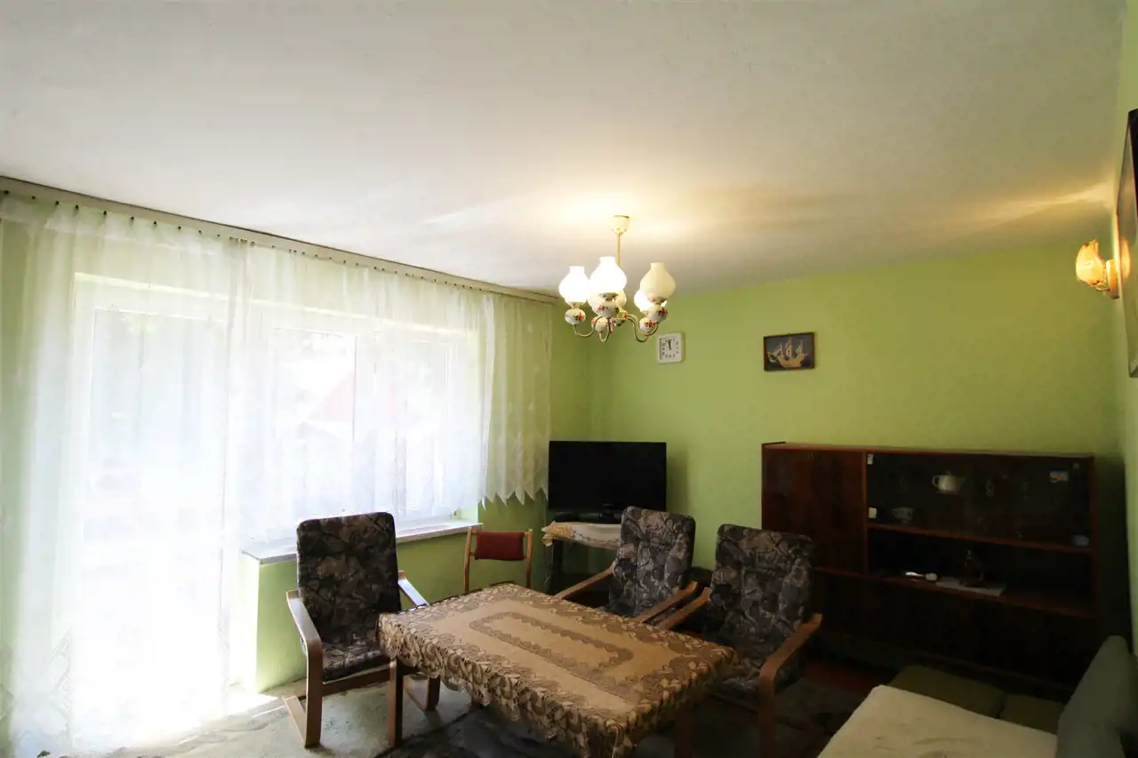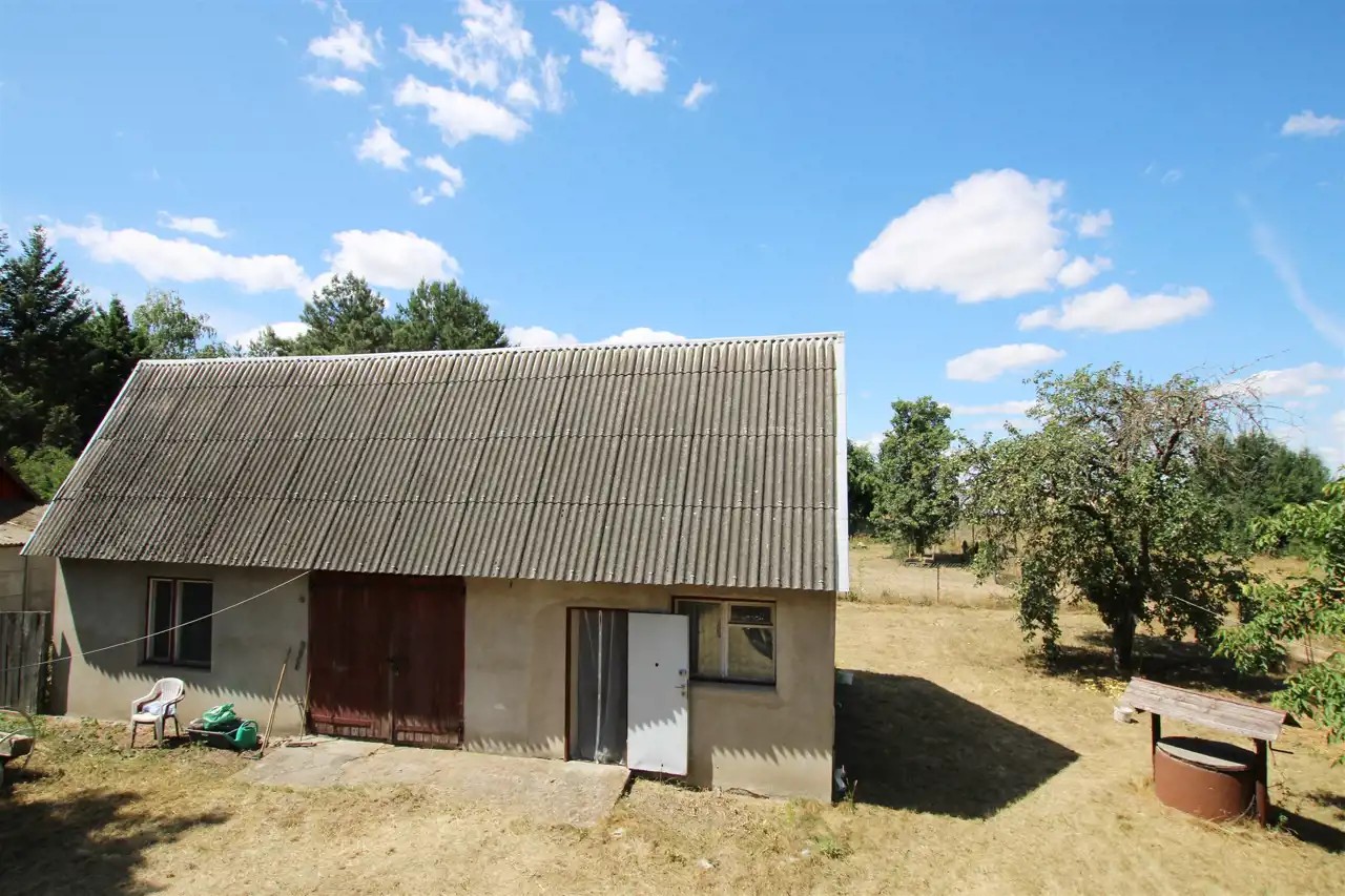 Budynek mieszkalny z lat 60 tych, wybudowany metodą tradycyjną z kamienia i cegły czerwonej, otynkowany, dach pokryty eternitem, okna PCV o powierzchni użytkowej około 50 m2 składa się z dwóch pokoi oraz kuchni.