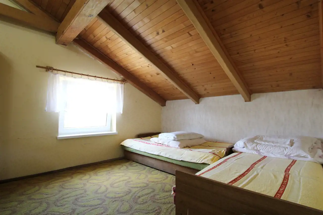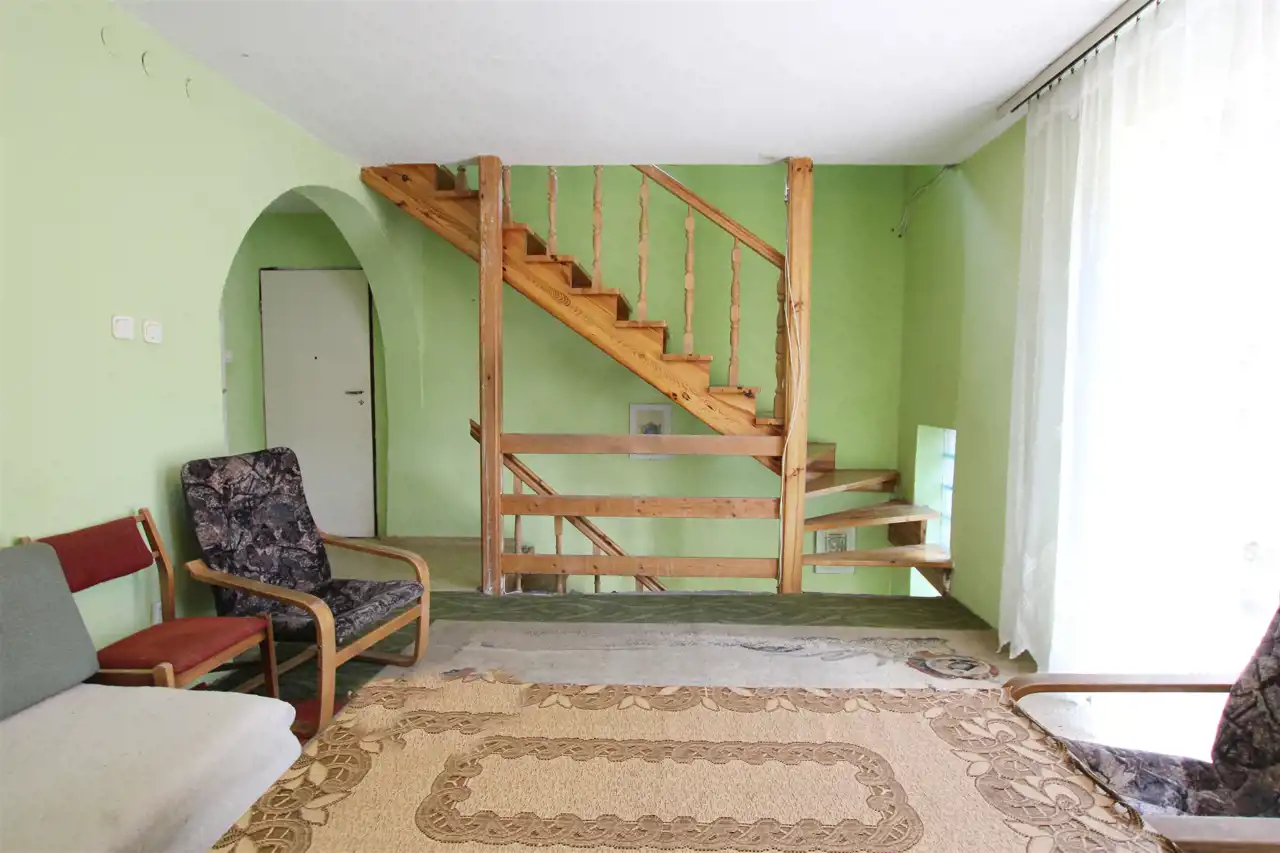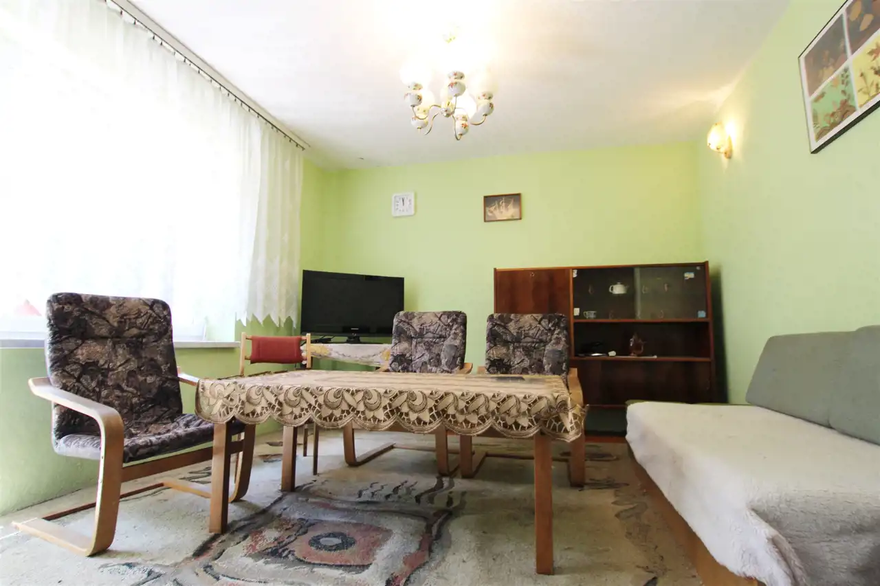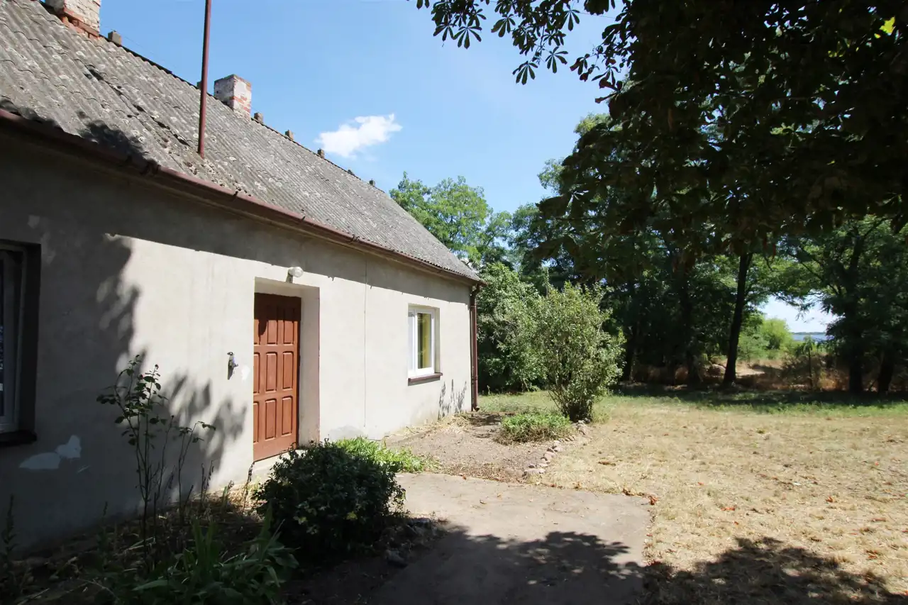 Budynek mieszkalny z lat 60 tych, wybudowany metodą tradycyjną z kamienia i cegły czerwonej, otynkowany, dach pokryty eternitem, okna PCV o powierzchni użytkowej około 50 m2 składa się z dwóch pokoi oraz kuchni.