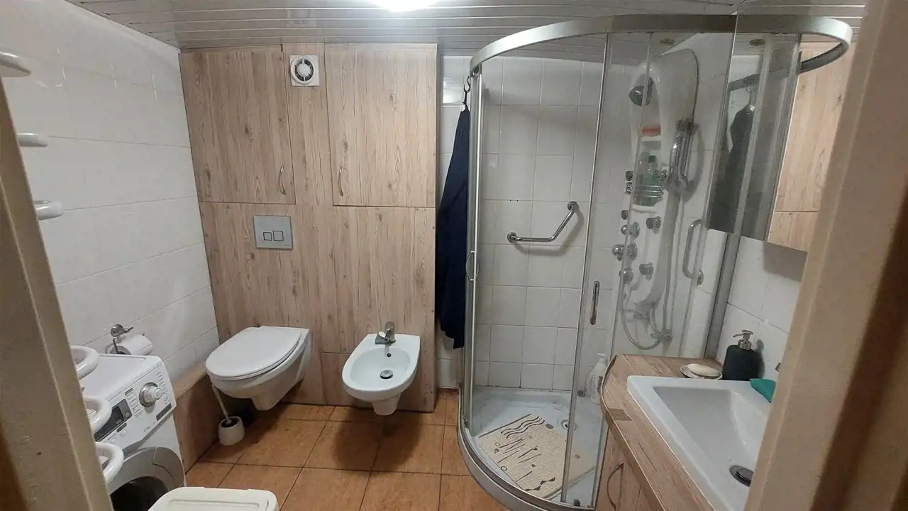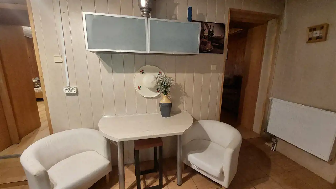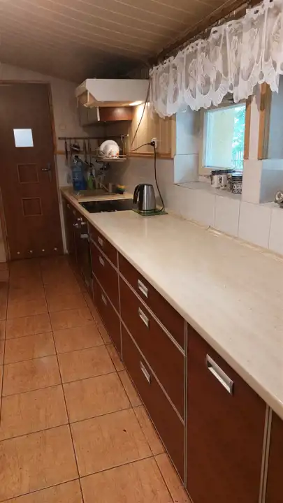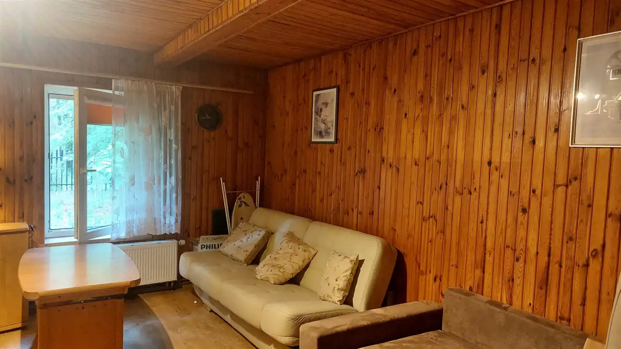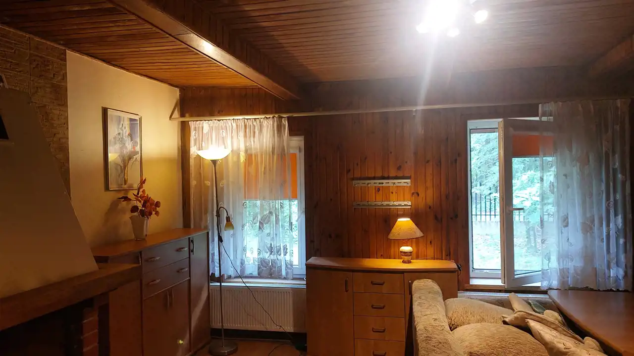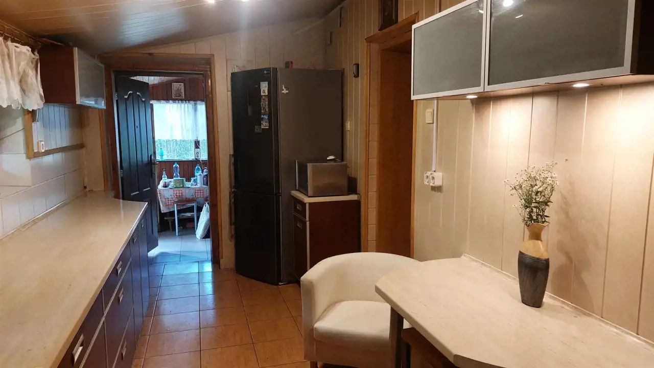 Dom składa się z 2 pokoi o powierzchni ok. 24 mkw i ok.15 mkw, kuchni ok.9mkw i łazienki w kabiną, wc, bidetem, umywalką i pralką. W pokojach na podłodze panele położone na deskach, odizolowane pianką, w kuchni terakota na podłodze z matą grzewczą, łazienka terakota na podłodze.