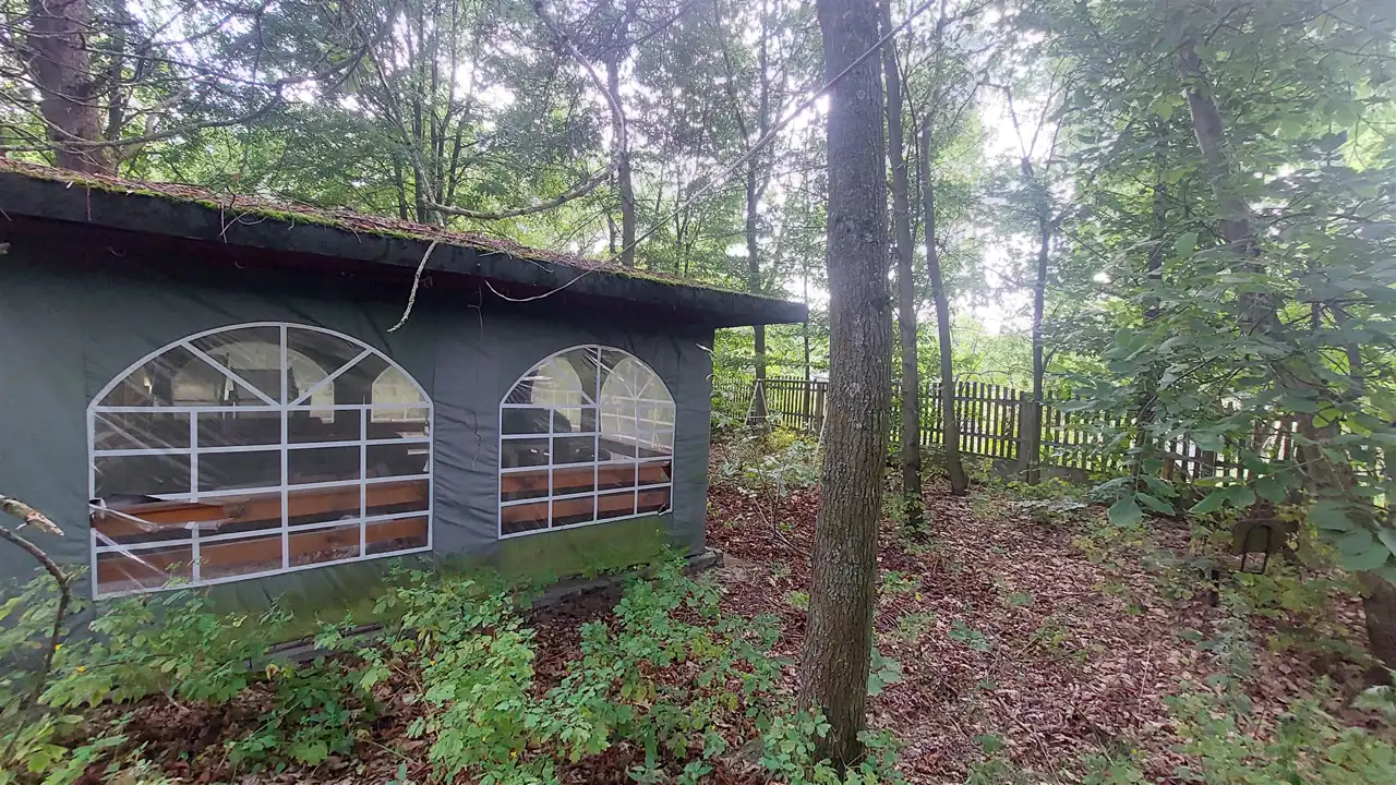 - Działka częściowo zagospodarowana, częściowo zalesiona, kwadrat