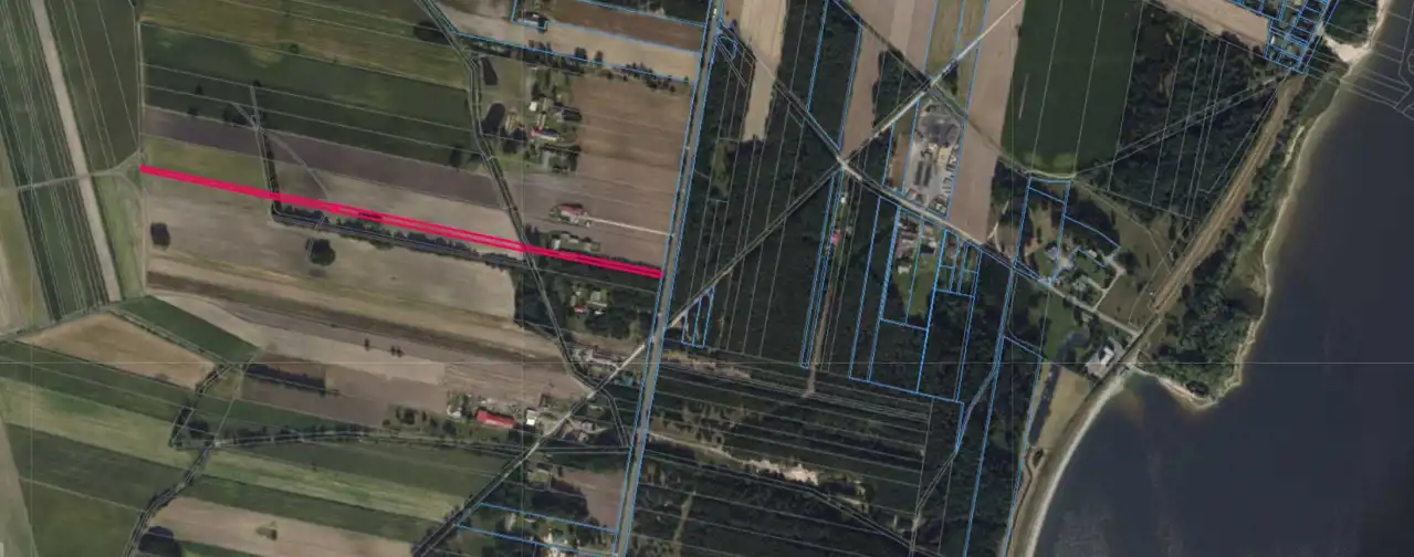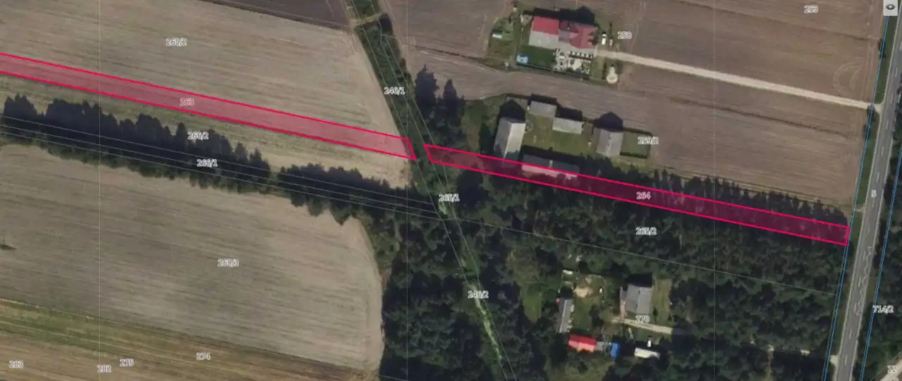 Opis działki: Działka składa się z trzech numerów ewidencyjnych, tworząc spójną całość o wymiarach około 8 metrów szerokości i 732 metrów długości. Bezpośredni dojazd zapewniony jest z drogi gminnej asfaltowej, co gwarantuje łatwy dostęp przez cały rok. Media takie jak prąd i wodociąg są dostępne w najbliższym sąsiedztwie działki, co czyni ją atrakcyjną zarówno dla osób poszukujących miejsca na rekreację, jak i dla potencjalnych inwestorów.