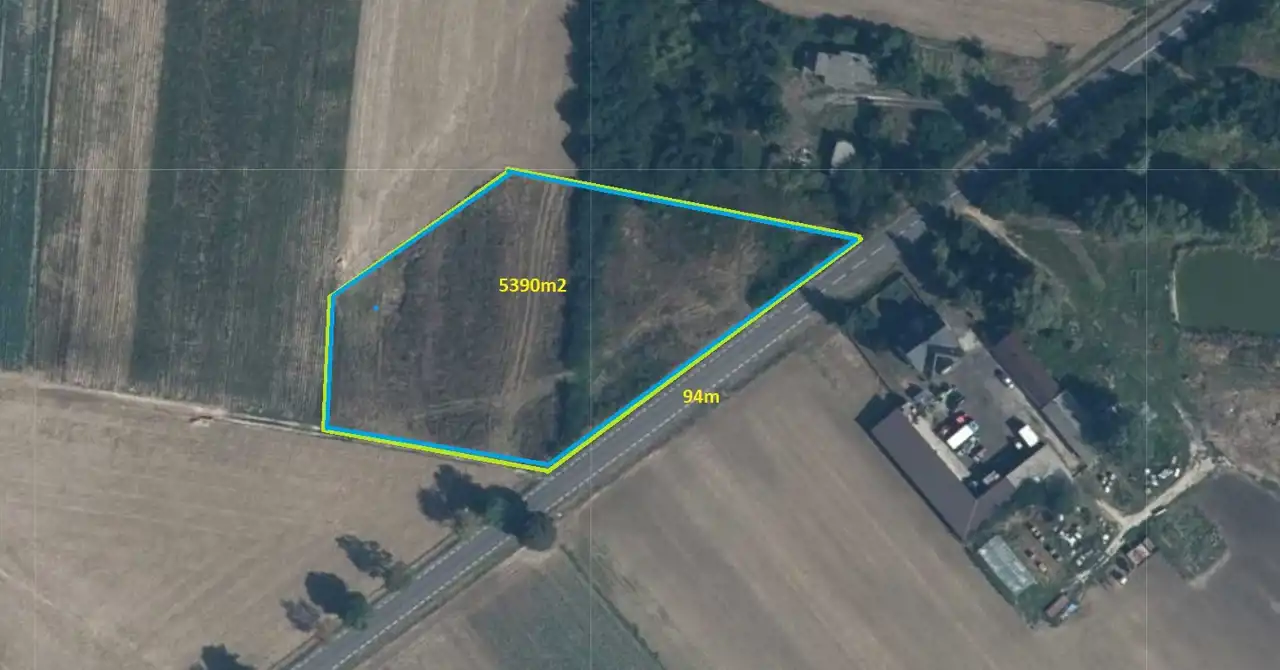 Prezentujemy trapezoidalną działkę o powierzchni 5390 m², położoną przy asfaltowej drodze wojewódzkiej, z szerokim frontem 94 m. Możliwość zakupu bez KOWR sprawia, że oferta jest jeszcze bardziej atrakcyjna dla inwestorów i osób prywatnych.