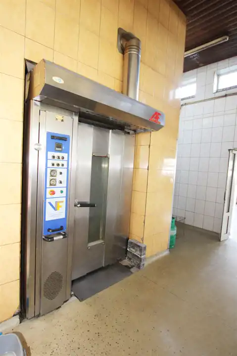 - HALA PRODUKCYJNA: wyposażona dwa piece ceramiczny RRK 35 opalany węglem z podajnikiem oraz piec obrotowy- olejowy, 3 mieszarki do ciasta, linia do produkcji chleba wyposażona w wagodzielarkę, zaokrąglarkę stożkową i wydłużarkę, zaokrąglarka do bułek, 2 wózki + 8 taśm wsadowych, przesiewacz do mąki wyposażony w mechanizm mielenia bułki ( zestaw sit)