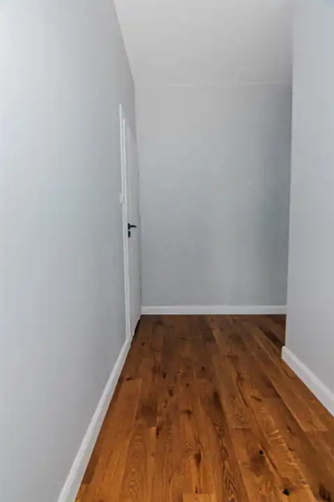 Parter domu wykończony, na podłogach deska Barlinecka, ściany gładź gipsowa malowana, łazienka terakota i glazura.