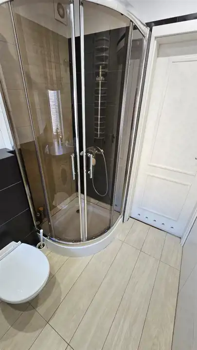 Parter - Salon z wyjściem na taras, oddzielna kuchnia z oknem, łazienka z prysznicem i wc, korytarz z szafą w zabudowie,