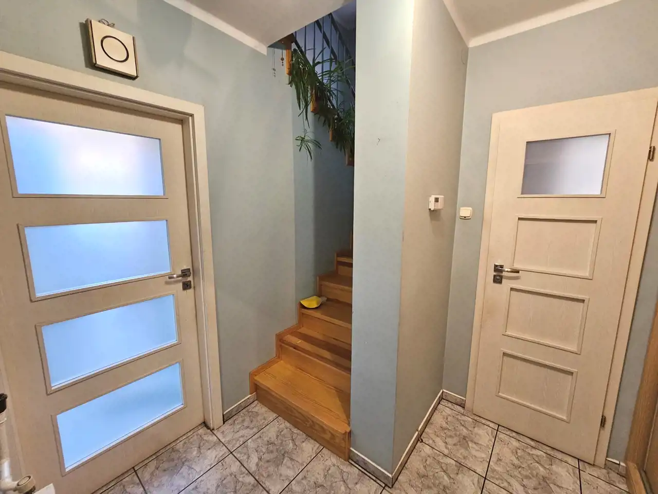 Dom jest podpiwniczony, co daje dodatkową przestrzeń do zagospodarowania. W bryle budynku znajduje się także garaż. Dodatkowym udogodnieniem są dwa tarasy oraz wykończone poddasze, które stanowi dodatkową przestrzeń mieszkalną. Nowe schody drewniane, w całym domu wymienione drzwi wewnętrzne. Ogrzewanie na piec węglowo - olejowy.