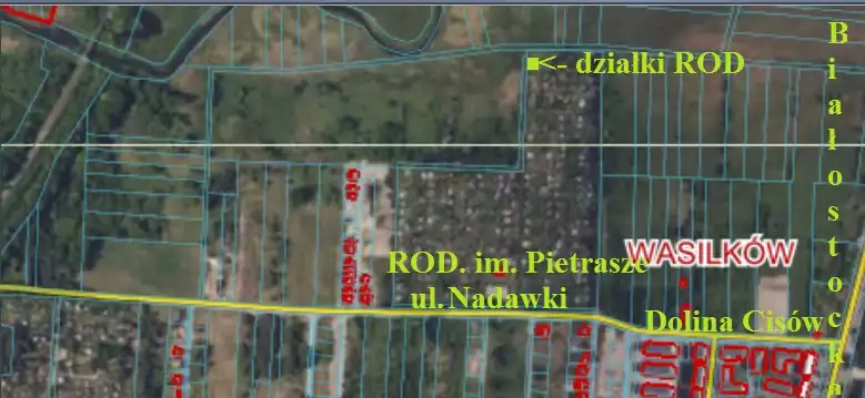 Działki o powierzchni 314 m2 oraz 324 mkw znajdujące się w Rodzinnych Ogródkach Działkowych im Pietrasze ul. Nadawki 24 w Wasilkowie - obok Doliny Cisów.