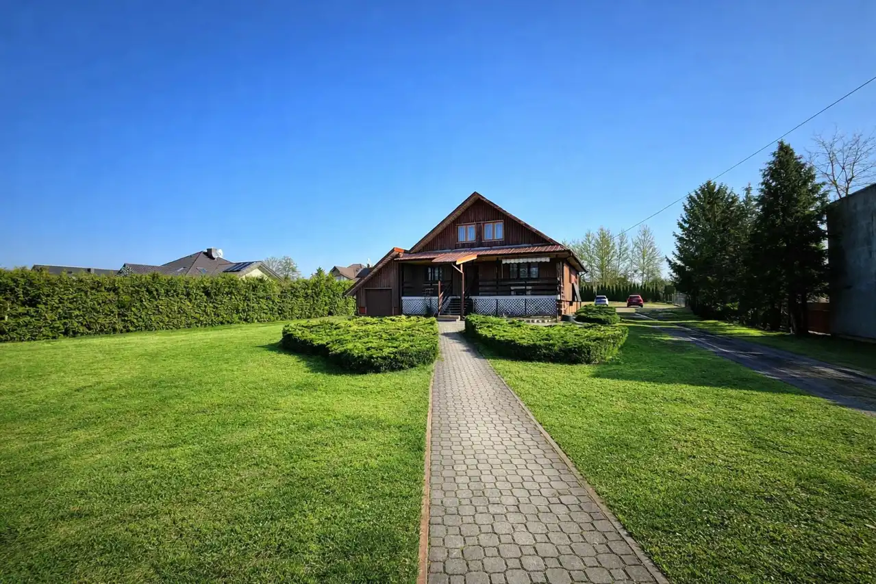 - ok. 1/3 – zabudowana domem mieszkalnym o pow. ok. 180 m² (rok budowy: 1992)
