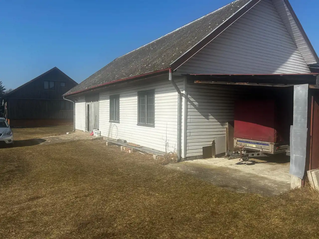- ok. 1/3 – zabudowana warsztatem stolarskim z pełnymi mediami (możliwość adaptacji na budynek mieszkalny lub usługowy)