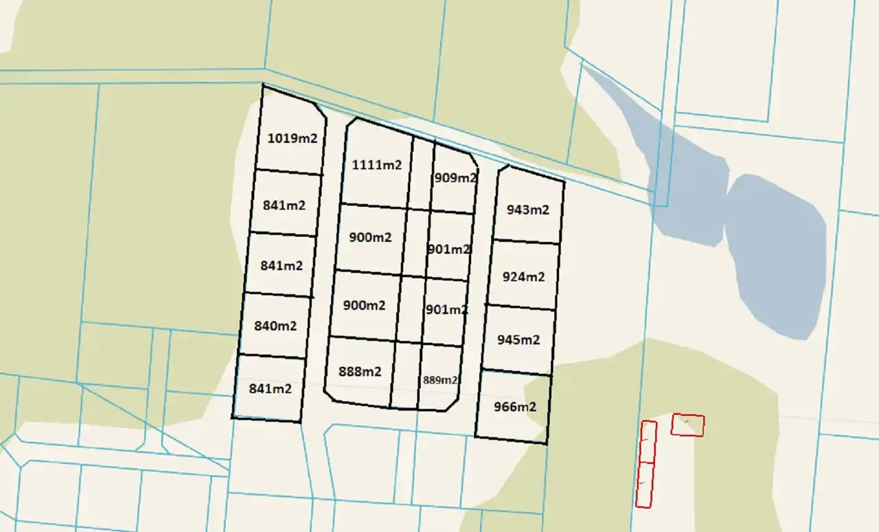 Dostępnych jest 16 działek o powierzchni od 840m2 do 1111m2.