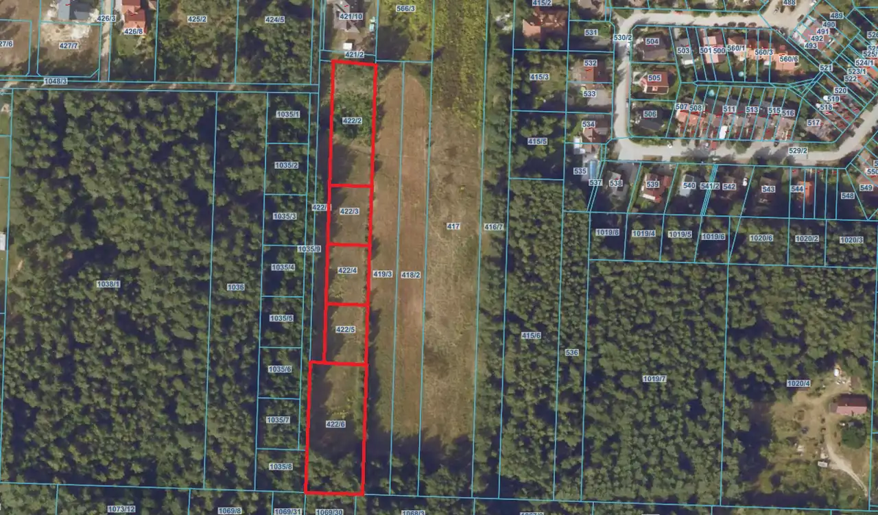 - 422/6 - 2549 m2 (działka budowlana z linią lasu, pod zabudowę rezydencjonalną)