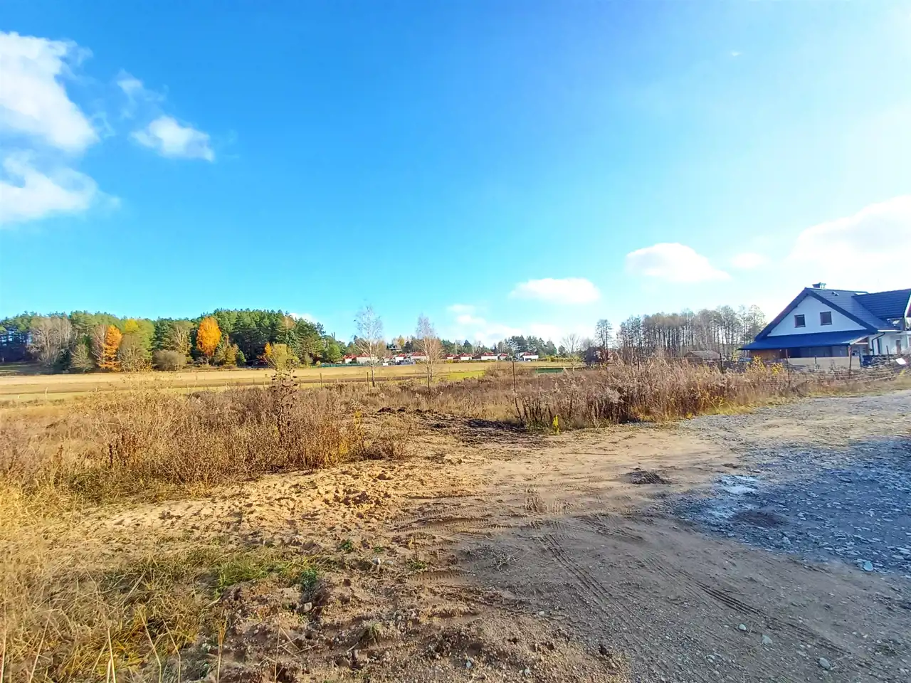 Działka posiada wydane warunki zabudowy, co znacząco usprawnia proces inwestycyjny. Teren jest płaski, co ułatwia zagospodarowanie oraz obniża koszty przygotowania pod budowę. Prąd dostępny – skrzynka znajduje się po drugiej stronie ulicy, co umożliwia szybkie podłączenie. Zaopatrzenie w wodę przewidziane jest poprzez studnię wierconą, a odprowadzenie ścieków do szczelnego zbiornika. Bezpośrednio w drodze przy działce przebiega również wodociąg i światłowód, co zwiększa komfort przyszłej zabudowy. Dojazd prowadzi drogą utwardzoną, a następnie do asfaltu, na odcinku ok. 155 m.