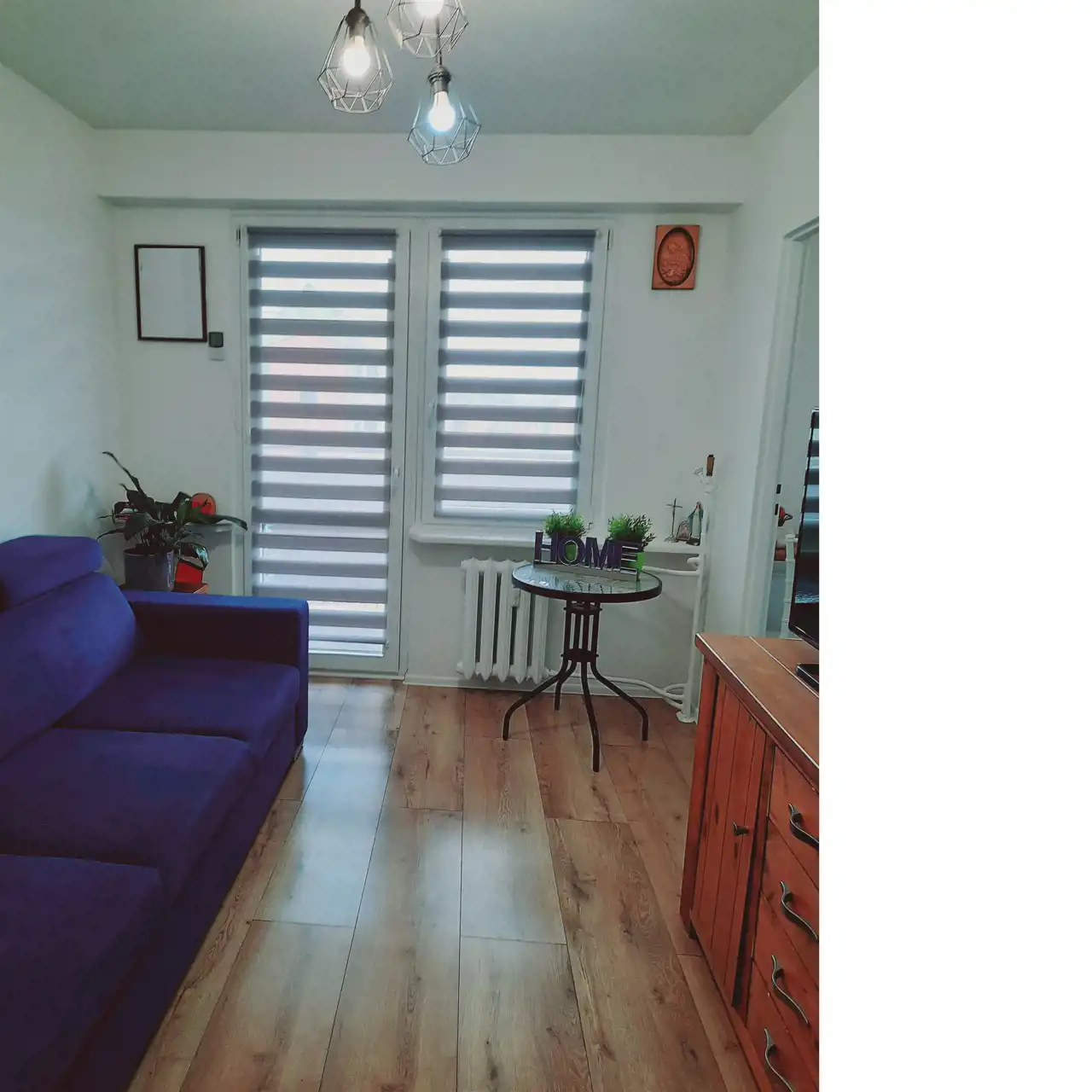 Salon i sypialnia– na podłodze panele.