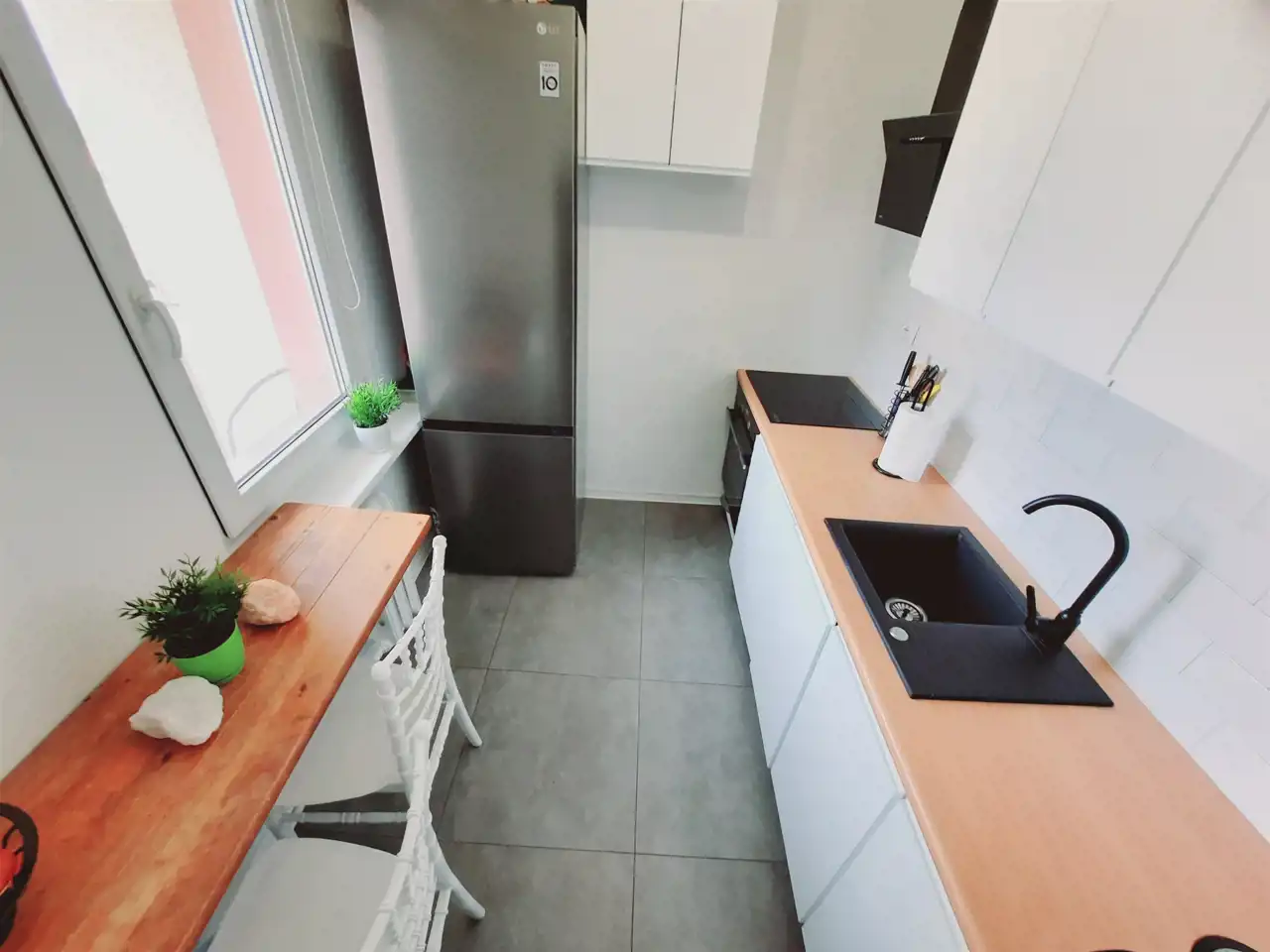 W cenie mieszkania zostają zabudowy stałe oraz sprzęt AGD: kuchenka indukcyjna, piekarnik (wszystko widoczne na zdjęciach).