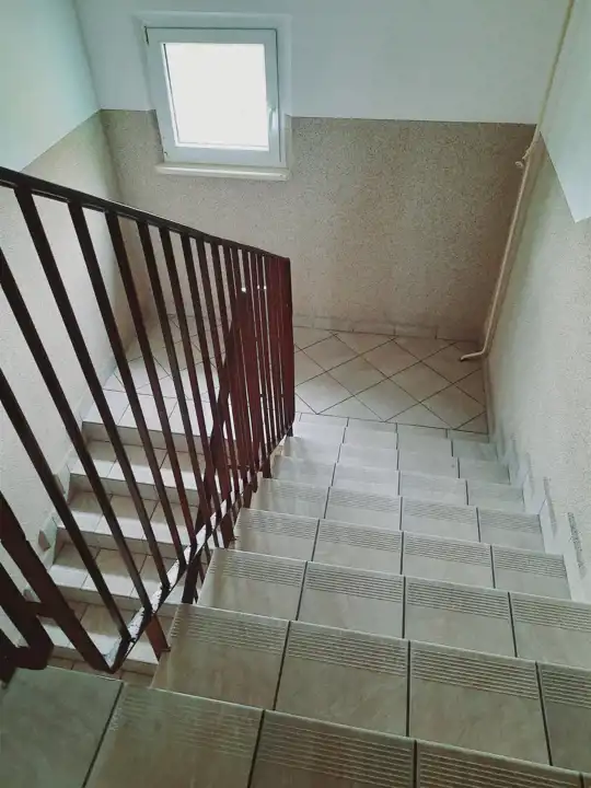 Czysta, zadbana klatka schodowa.