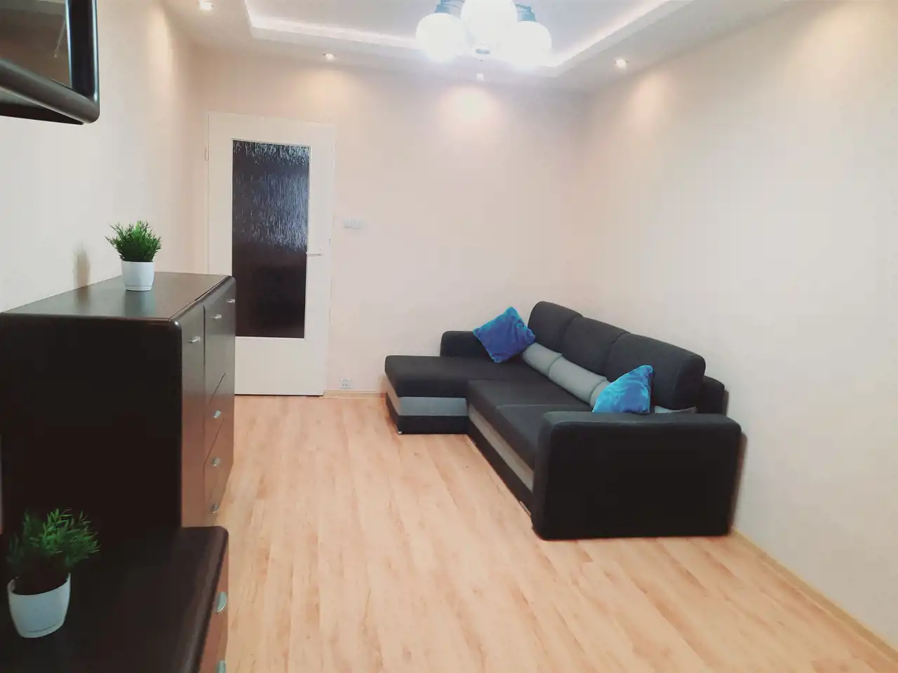 Mieszkanie jest dobrym stanie technicznym – do wprowadzenia, środkowe i dwustronne. Wnętrze wykończone zostało materiałami dobrej jakości. W salonie - podwieszany sufit z ledami.