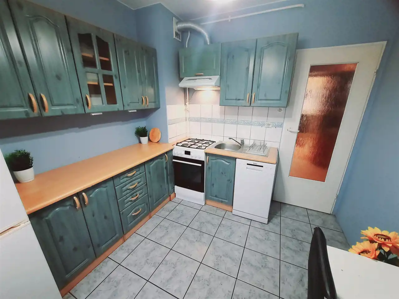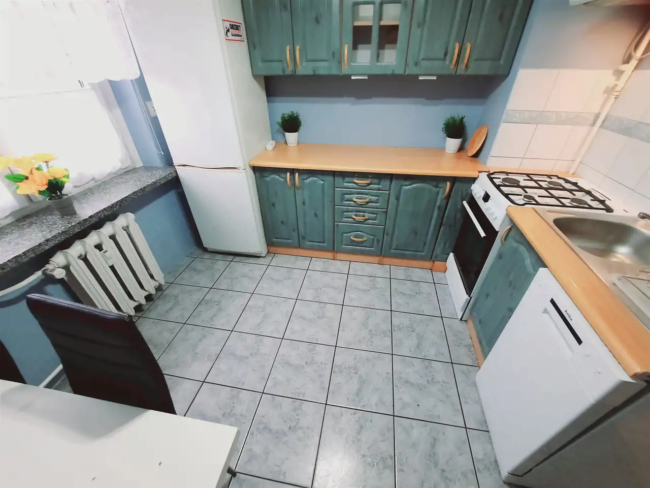 W cenie mieszkania zostaje zabudowa kuchenna, meble oraz sprzęt AGD: lodówka, zmywarka, pralka, kuchenka gazowa (wszystko widoczne na zdjęciach).