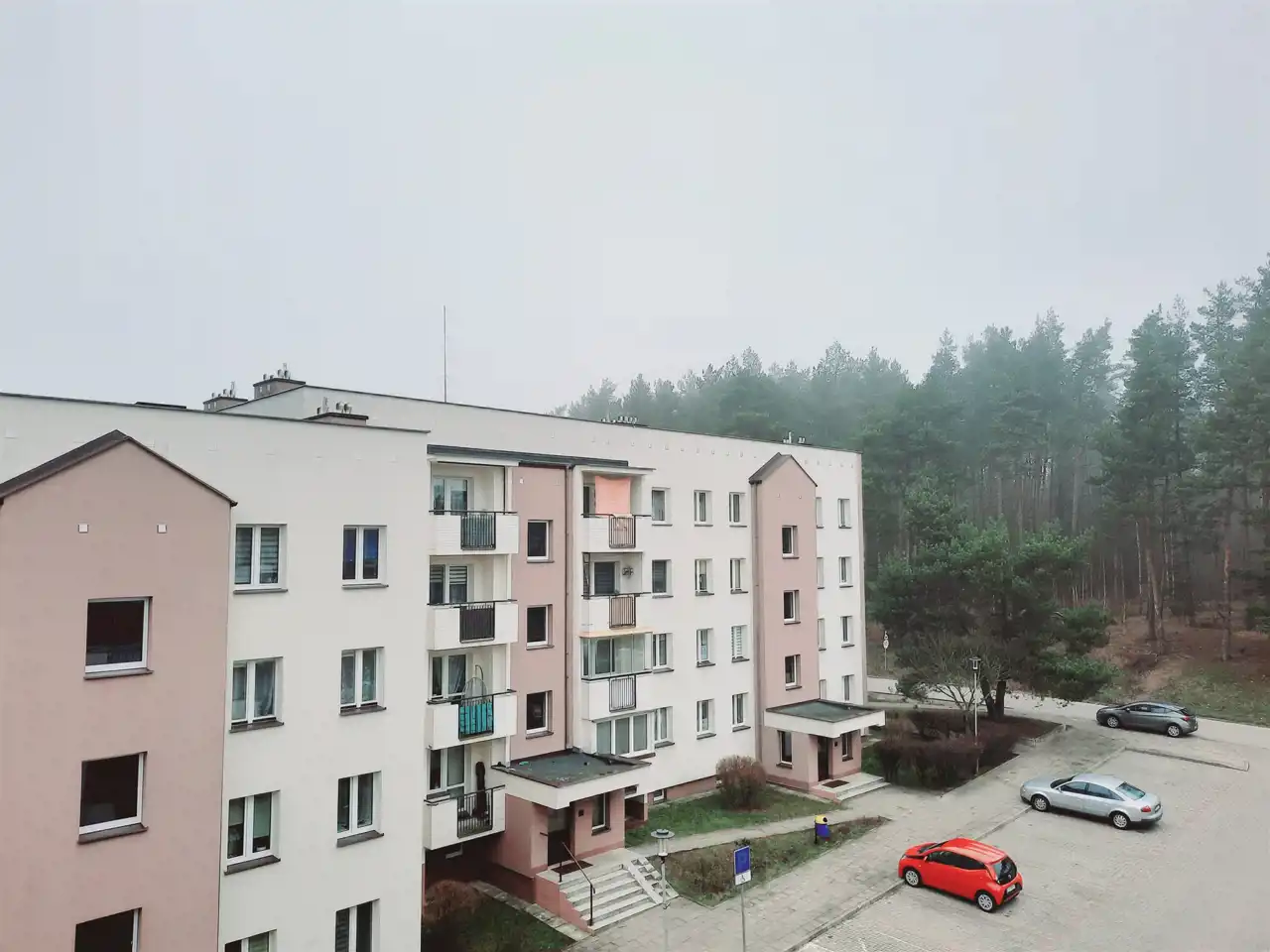 *Dużo wokoło zieleni (za budynkiem las)