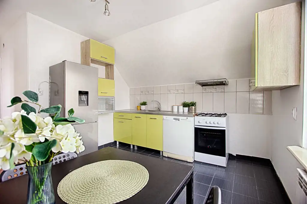 Mieszkanie gotowe do zamieszkania, kuchnia posiada zabudowę kuchenną, stół z krzesłami oraz AGD tj. lodówko-zamrażarka, zmywarka, piekarnik z płytą gazową. W salonie znajdują się dwie sofy, fotele, stolik, szafka RTV oraz regał. W sypialniach do dyspozycji są dwa łóżka, dwie kanapy, biurko, szafa, dwa stoliki.
