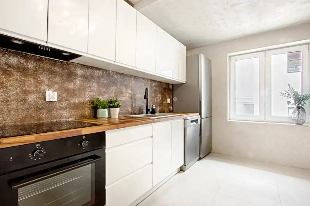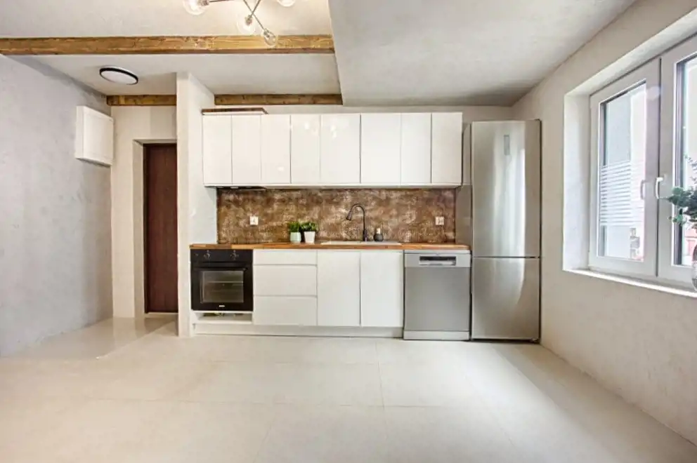 - aneks kuchenny z salonem (zabudowa mebli kuchennych, lodówka, zmywarka, płyta indukcyjna, piekarnik)