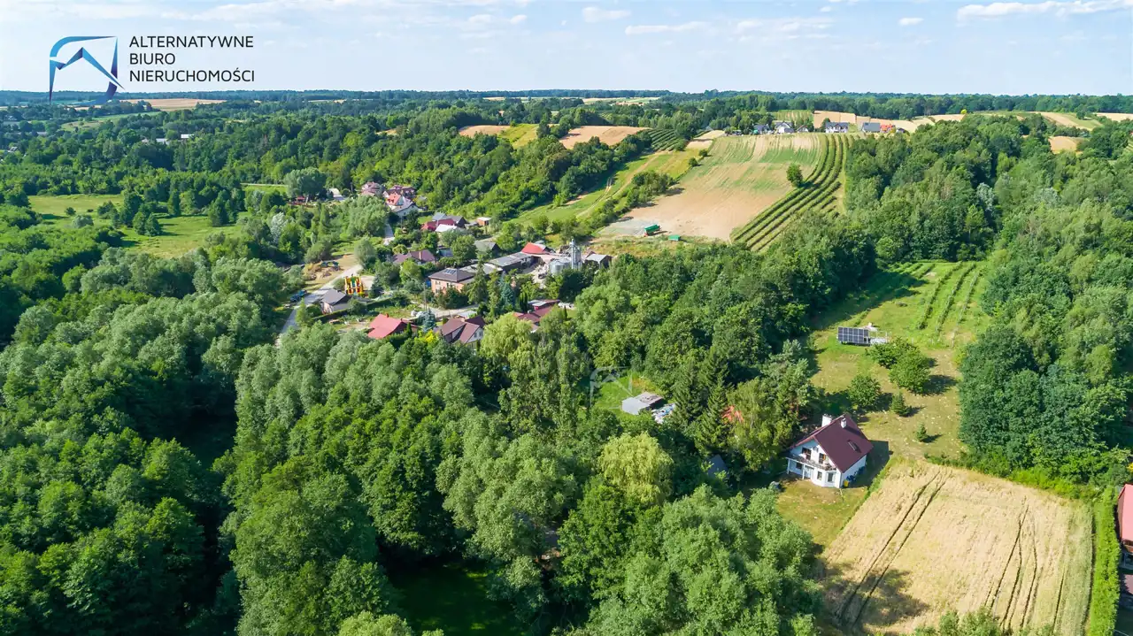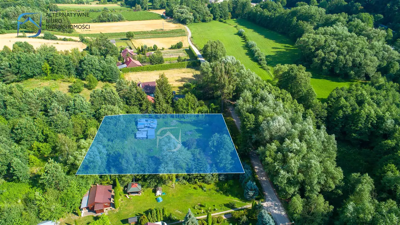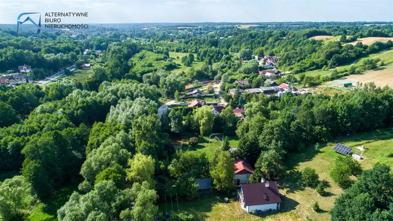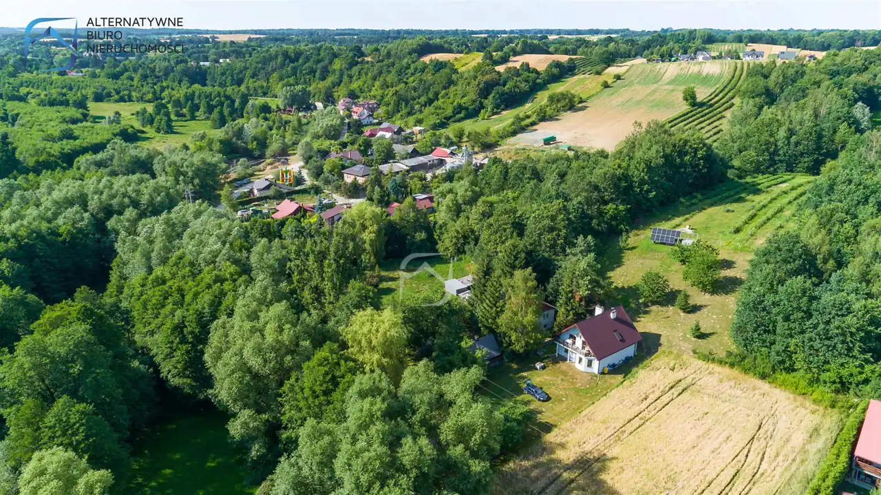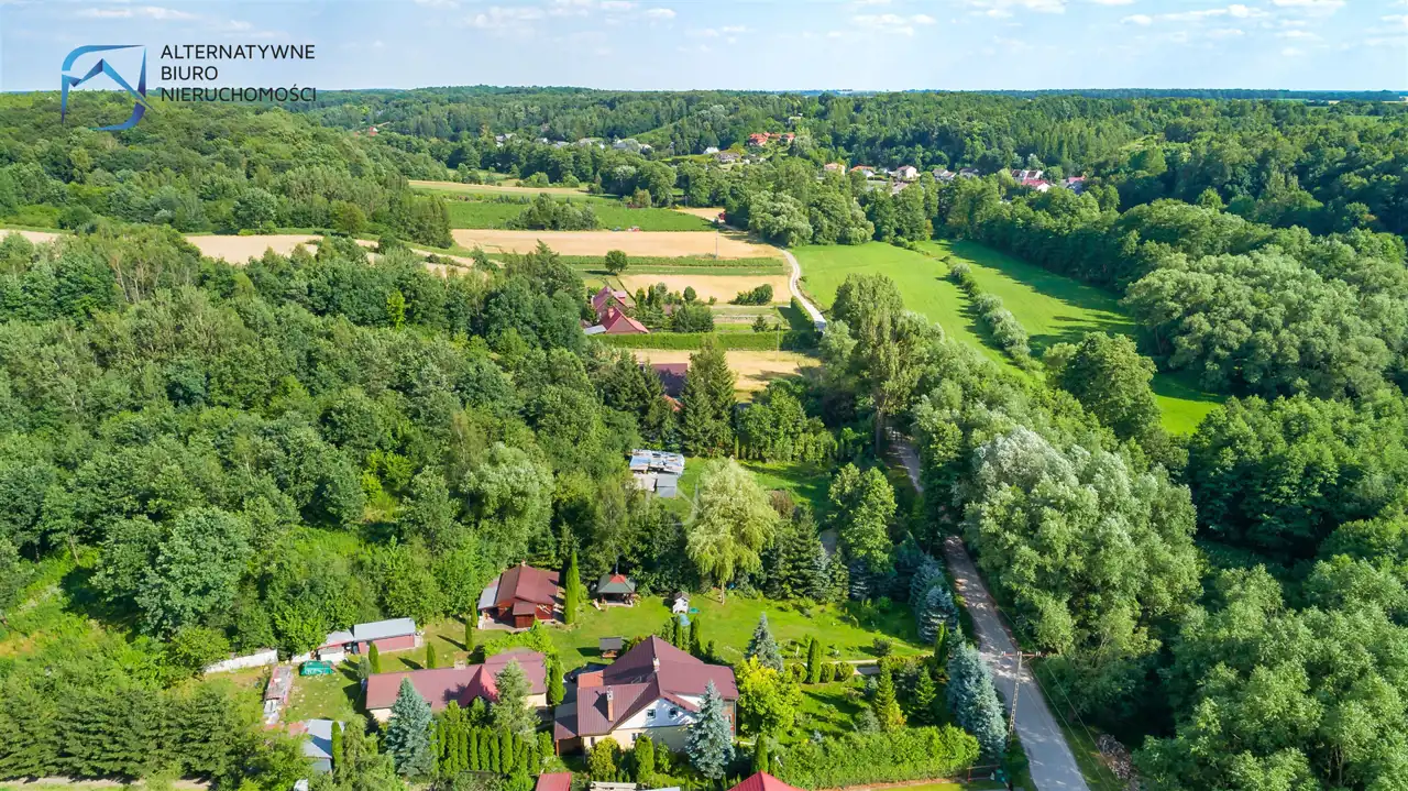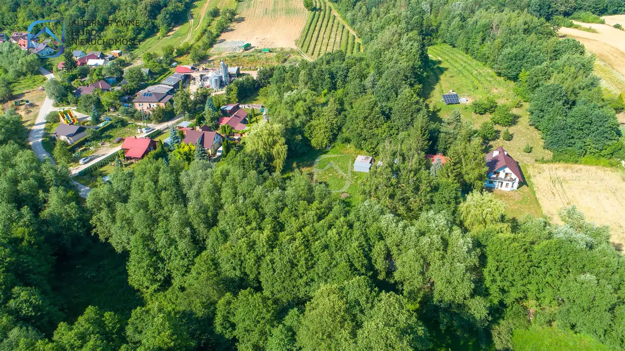 Okolica jest bardzo zielona i malownicza - działkę zewsząd okalają lasy, a w niewielkiej odległości przepływa rzeka Bystra.