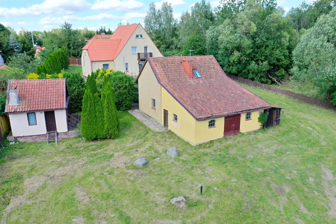 Nieruchomość zlokalizowana jest na działce o powierzchni 8153 m2. Działka zabudowana jest trzema budynkami mieszkalnymi o powierzchniach użytkowych 140 m2, 97 m2, 18 m2.