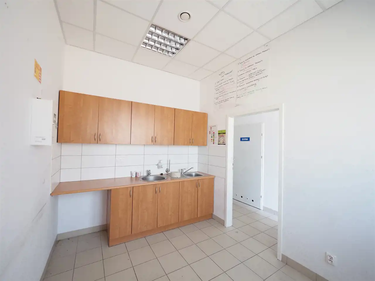 Budynek składa się z przestronnej sali sprzedaży, zaplecza socjalnego oraz komory dostaw. Lokal ogrzewany jest piecem gazowym marki Brotje, woda podgrzewana jest bojlerem elektrycznym.