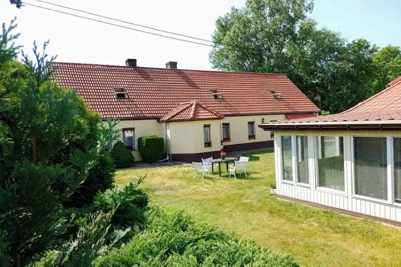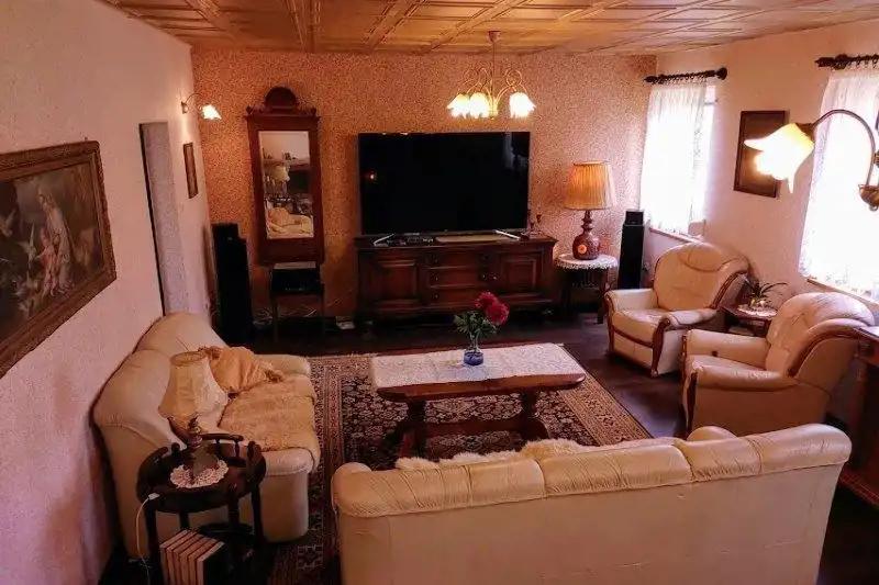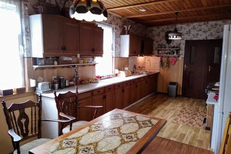 Na działce dodatkowo jest budynek gospodarczy/stodoła/garaż z kuchnią letnią około 140m2 oraz szklarnia. W części ogrodu jest zadbany stary sad. Budynek dobrze wyposażony, w bardzo dobrym stanie wykończenia. W skład domu wchodzi 5 pokoi, 2 łazienki, 2 toalety, kuchnia na parterze oraz użytkowym poddaszu. Dach pokryty dachówką, nowa elewacja.