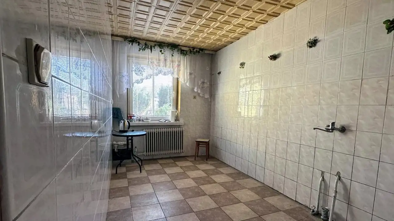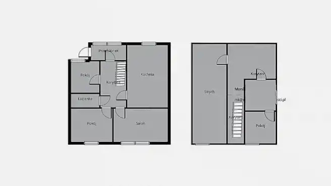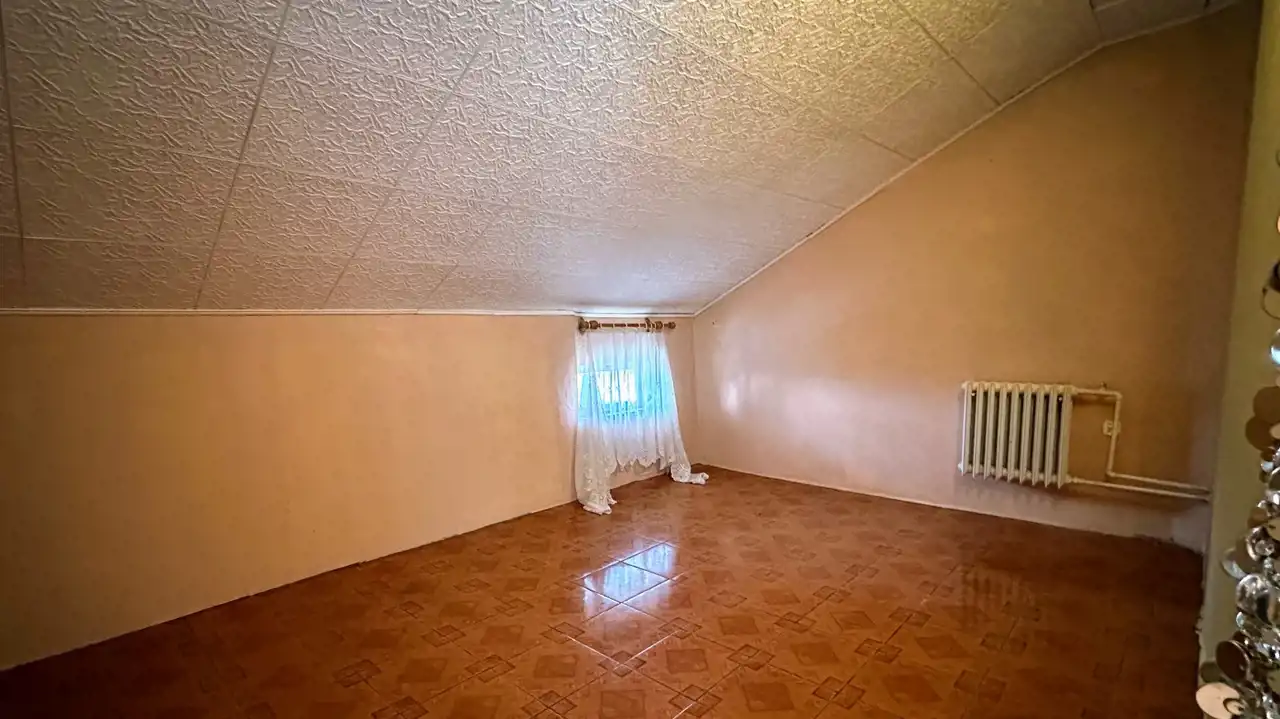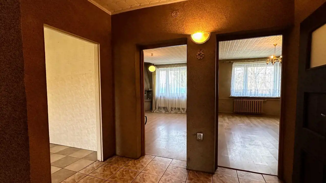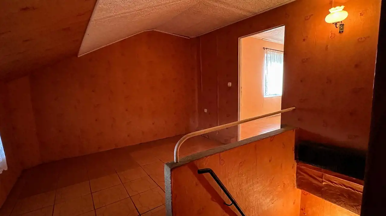 Dom około 160m2. Parter 3 Pokoje, Kuchnia, Łazienka, Ganek. Piętro dwa pokoje oraz strych, W piwnicy piec centralnego ogrzewania na drewno oraz węgiel. Dodatkowo kominek w jednym pokoju na parterze. Dwie działki : 247m2 oraz 348m2. Na jednej działce murowany budynek gospodarczy.