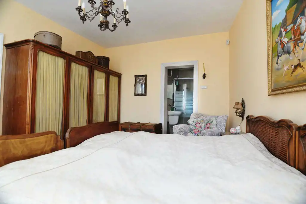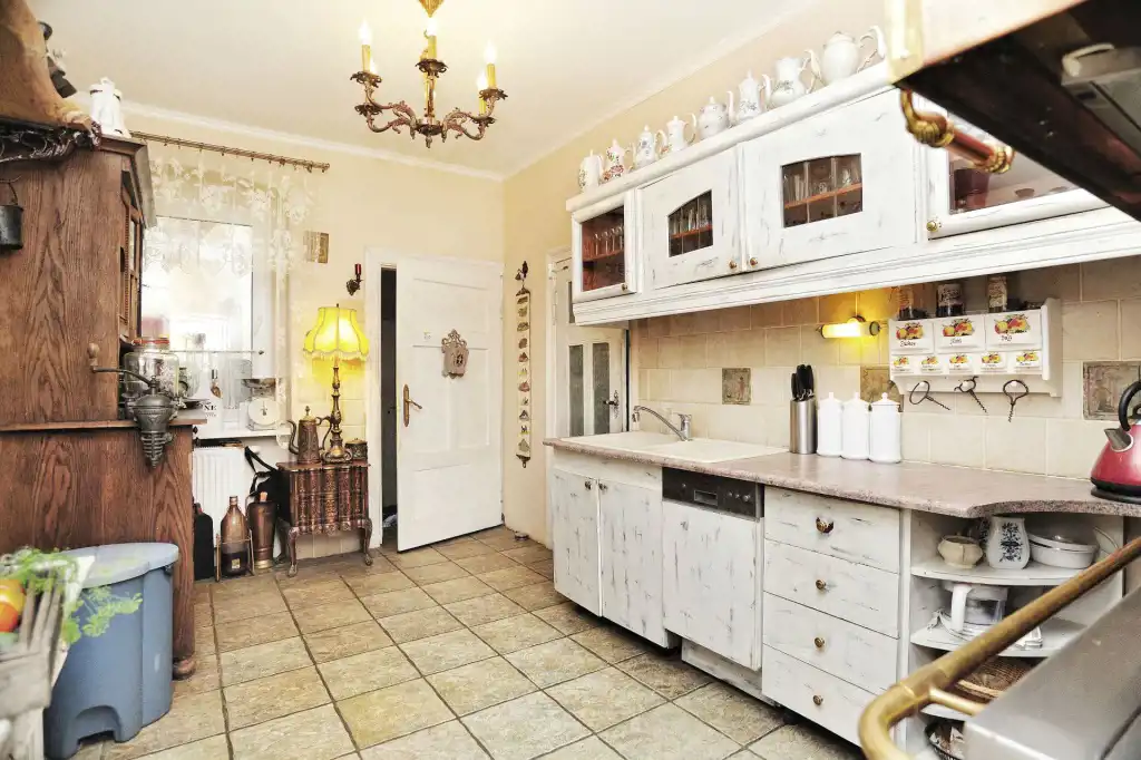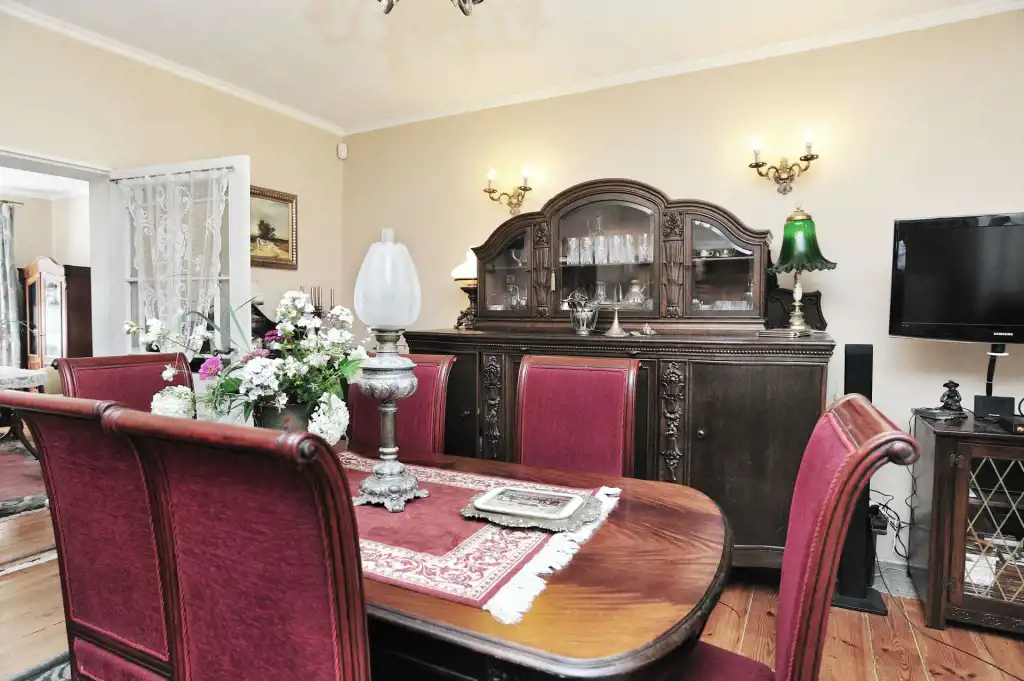 Rozkład: Na parterze 3 pokoje, w tym jeden w amfiladzie, duża kuchnia, dwie łazienki, holl.