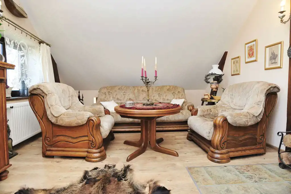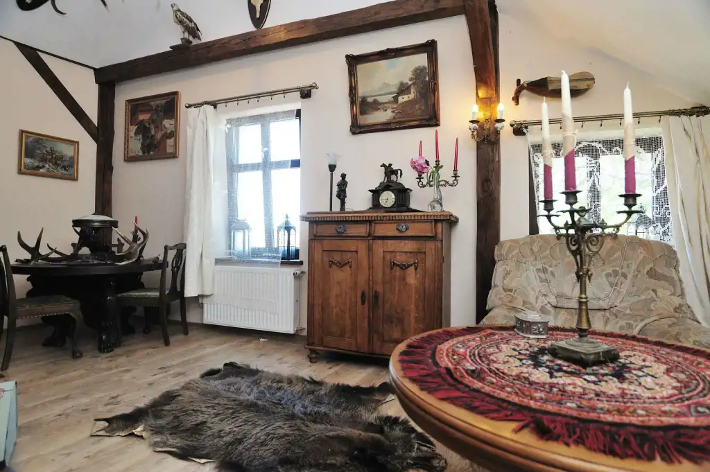 - Media Ogrzewanie: kominkowe; Woda: inna; Kanalizacja: szambo; Prąd: jest; Gaz: brak